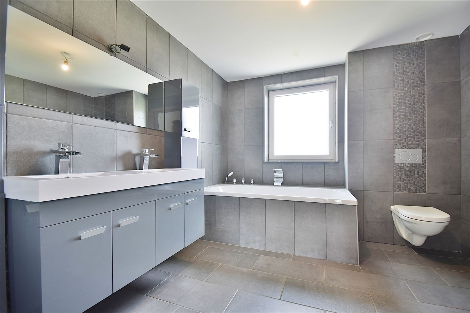 Au rez-de-chaussée: Un spacieux hall d'entrée, une cuisine hyper-équipée avec îlot central ouverte sur un lumineux séjour de +/- 33m², une vaste suite parentale avec salle de bain privative, une toilette indépendante, une buanderie et un garage.