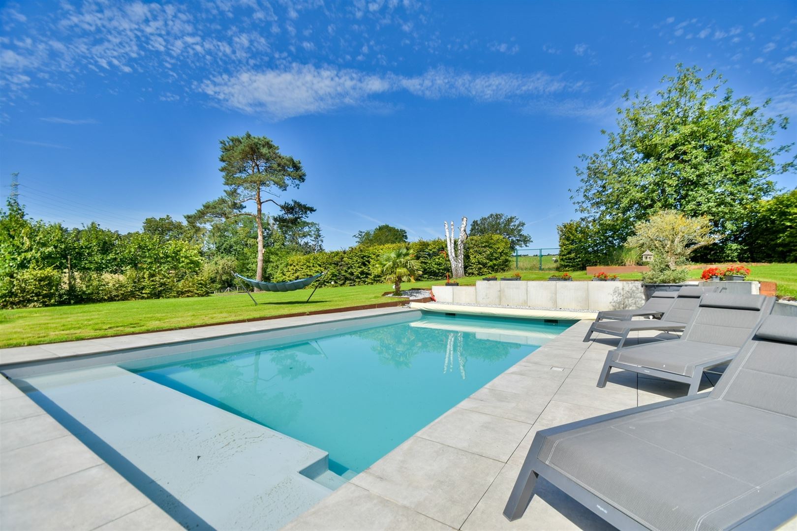 Idéalement située au calme, au bout d'une impasse, magnifique propriété implantée sur un terrain de 8.554 m² qui se compose comme suit: Au rez-de-chaussée; hall d'entrée avec espace vestiaire et WC indépendant, bureau avec accès indépendant (idéal pour profession libérale), spacieux séjour (salon/salle à manger) de ± 78m² avec cassette à bois double face et accès direct à la cave à vin, lumineuse cuisine entièrement équipée avec accès à la terrasse, chaufferie et deux grands garages avec mezzanine. Au 1er étage; hall de nuit, palier avec espace bureau ou salle de jeu, 3 belles chambres dont une parentale avec salle de bains de ± 31m², salle de douche, buanderie et WC indépendant. Au 2ème étage; une quatrième chambre de ± 25m² et deux espaces grenier. Cette charmante bâtisse bénéficie également d'une grande terrasse de ± 90m², d'une piscine extérieure chauffée, de deux hauts car port, une étable, 2 boxes à chevaux, un étang naturel, deux enclos à gibier et un superbe jardin arboré de ± 3.500 m². Implantée dans un cadre 100% nature, ce bien vous séduira par ses grands espaces verts, ses spacieux volumes intérieurs et sa tranquillité. Caractéristiques techniques: châssis PVC triple vitrage, toiture, sol et murs isolés, chauffage central mazout, cassette à bois double face, 26 panneaux photovoltaïques, excellente performance énergétique (PEB A), système d'alarme, caméras, pompe à chaleur. Faire offre à partir de 769.000€ (sous réserve de l'acceptation des propriétaires).