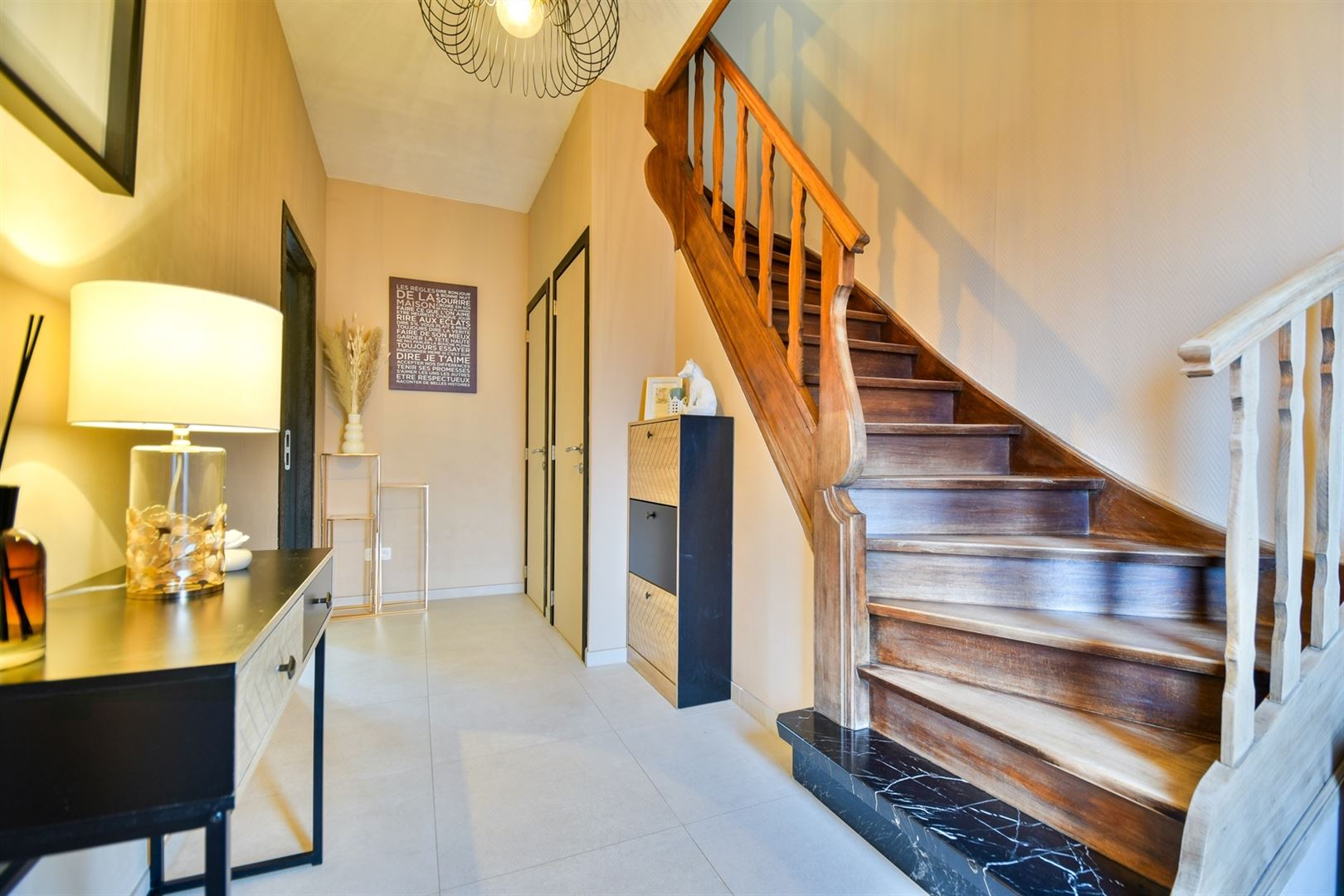 Idéalement située à proximité de toutes commodités (commerces, écoles, transports,..) et des grands axes routiers, charmante maison entièrement rénovée qui se compose comme suit: Au sous-sol; 4 espaces caves. Au rez-de-chaussée; Hall d'entrée, salon, salle à manger, cuisine neuve entièrement équipée et WC indépendant. Au 2ème étage; 2 spacieuses chambres de 14m² et 14,5m², bureau/dressing et salle de bains. Le bien bénéficie également d'un très joli jardin agrémenté d'une terrasse bien orientés SUD-OUEST. Possibilité d'acquérir un garage fermé en supplément. Caractéristiques techniques: Châssis PVC double vitrage, chauffage central gaz (chaudière Bosch), toiture plate en roofing isolée (10cm), excellente performance énergétique (PEB C!), électricité CONFORME, volets électriques, raccordement à l'égout. Ce bien vous séduira par sa localisation, son charme, son confort et sa rénovation complète! Faire offre à partir de 249.000€ (sous réserve de l'acceptation des propriétaires). www.immo-bertrand.be