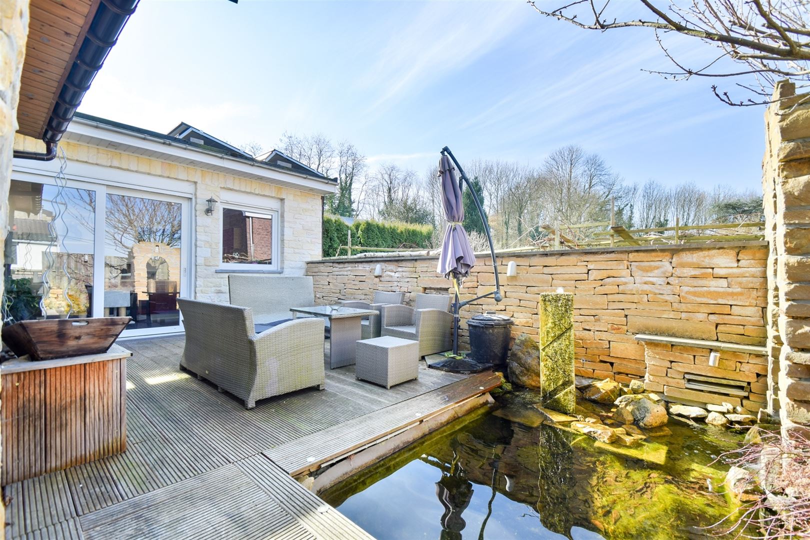 En extérieur : une terrasse aménagée de +- 35 m² idéalement orientée (SUD-OUEST) avec un point d'eau ainsi qu'une remise de +- 6 m².