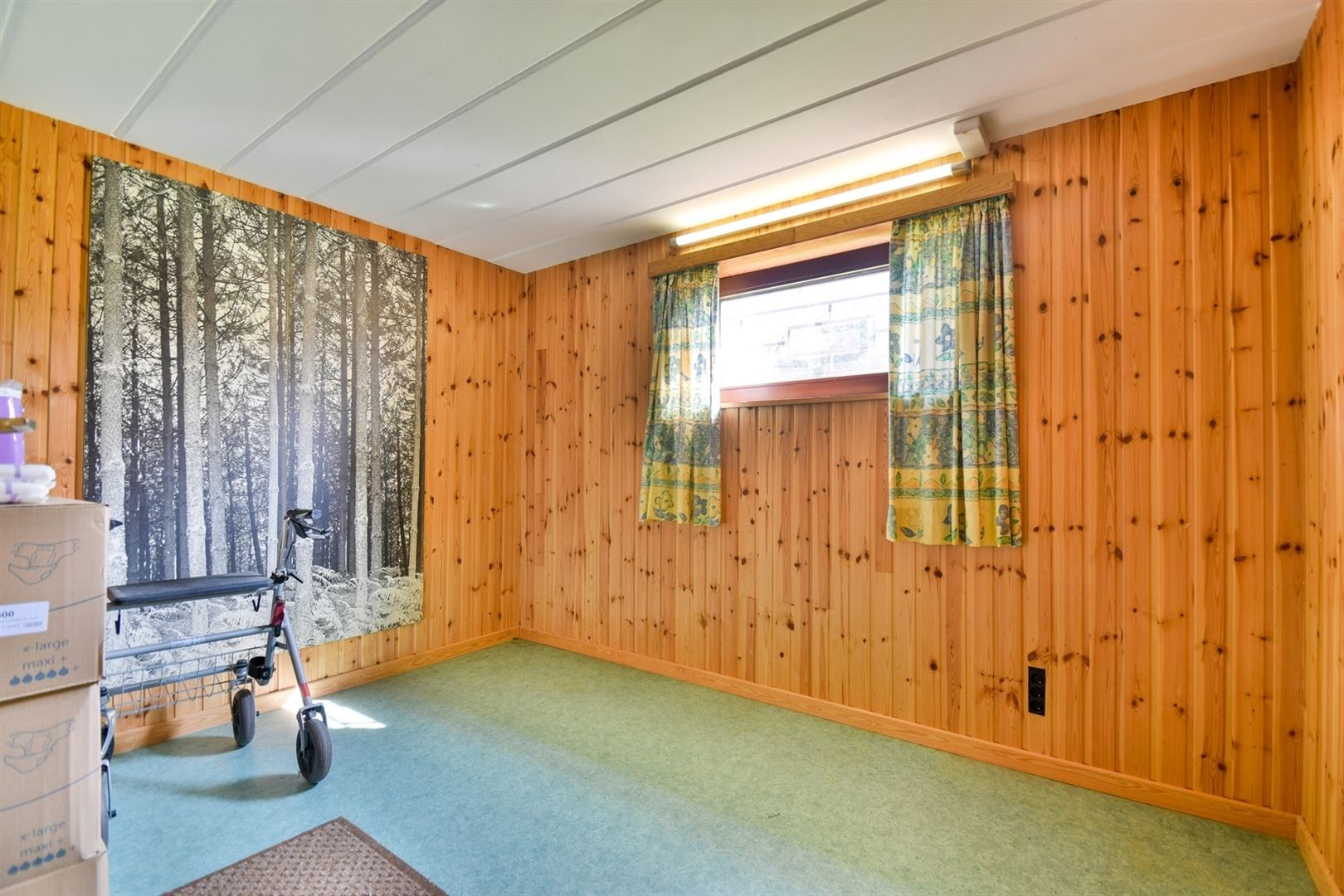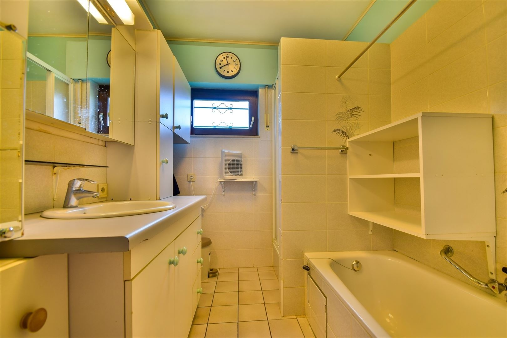 Au rez-de-chaussée: 2 agréables chambres (+/- 15m² et 8m²), une buanderie, une toilette indépendante et un garage de 22m².