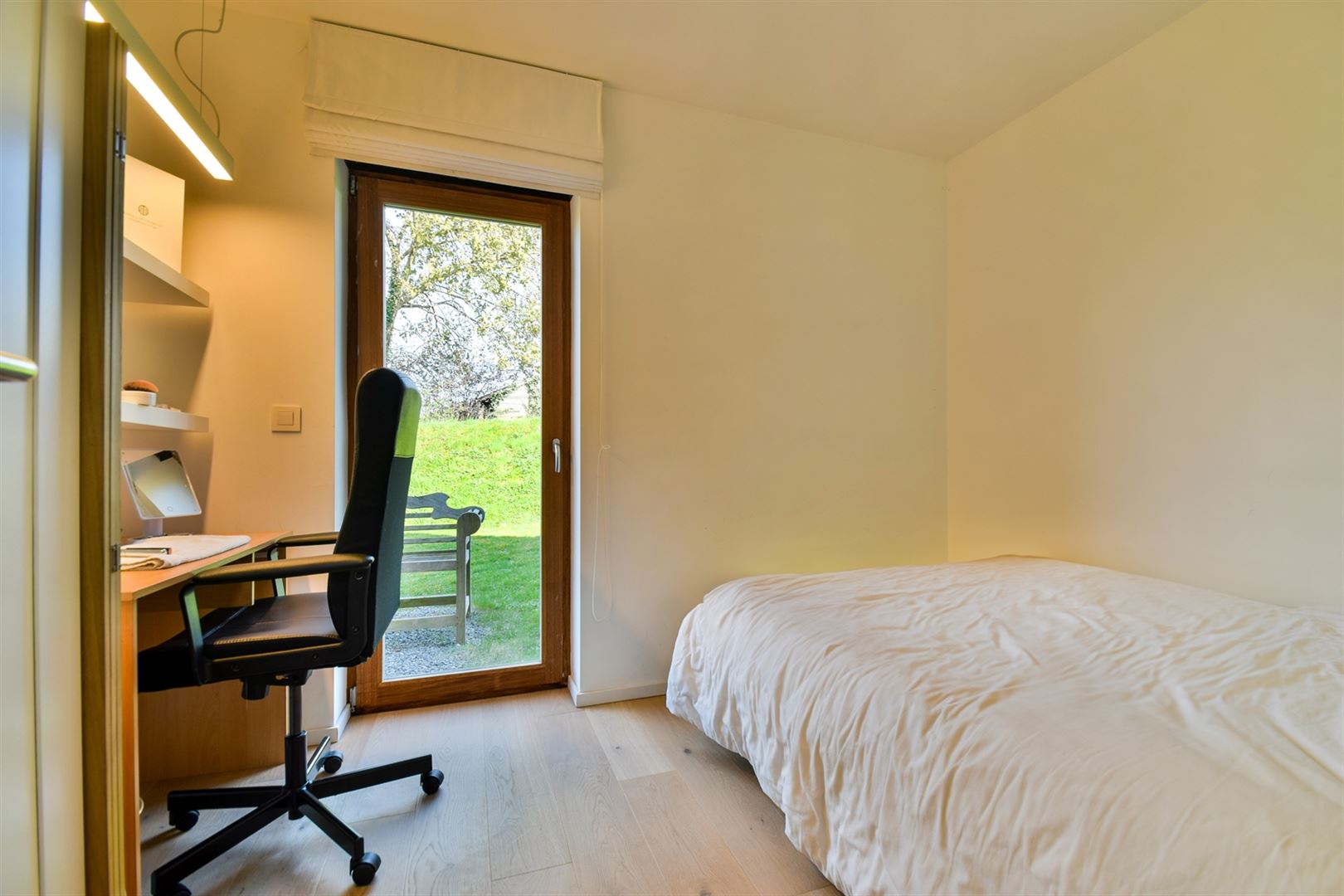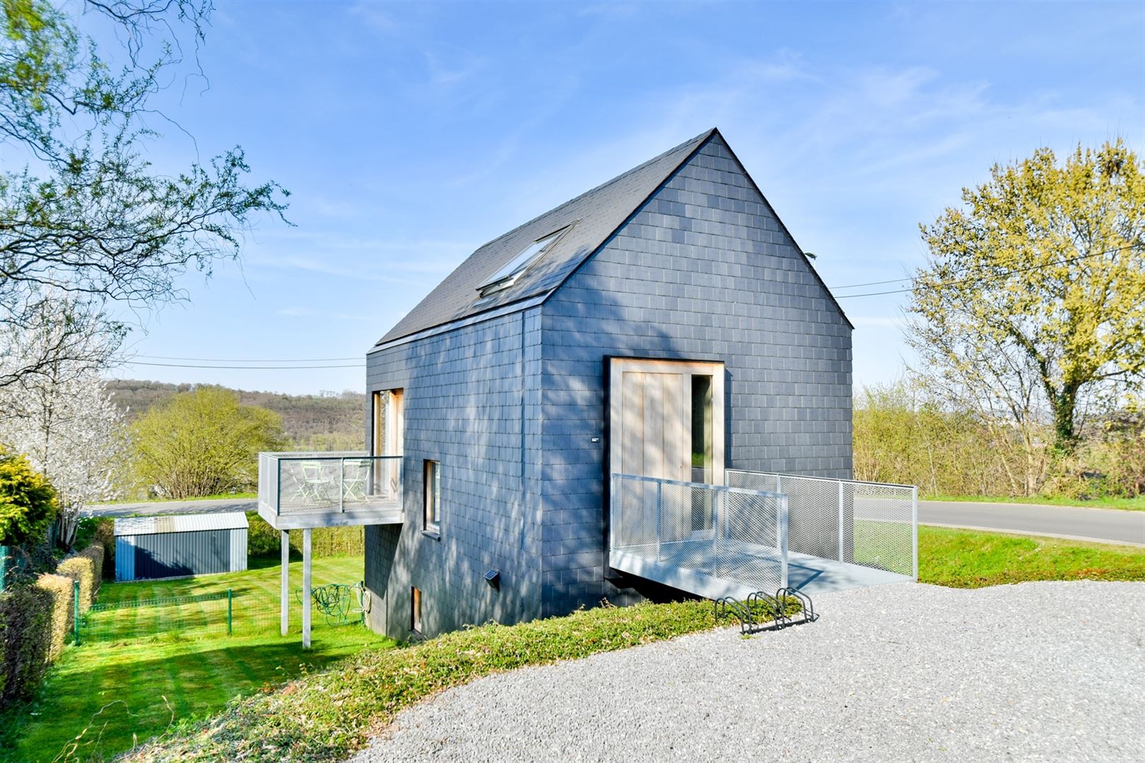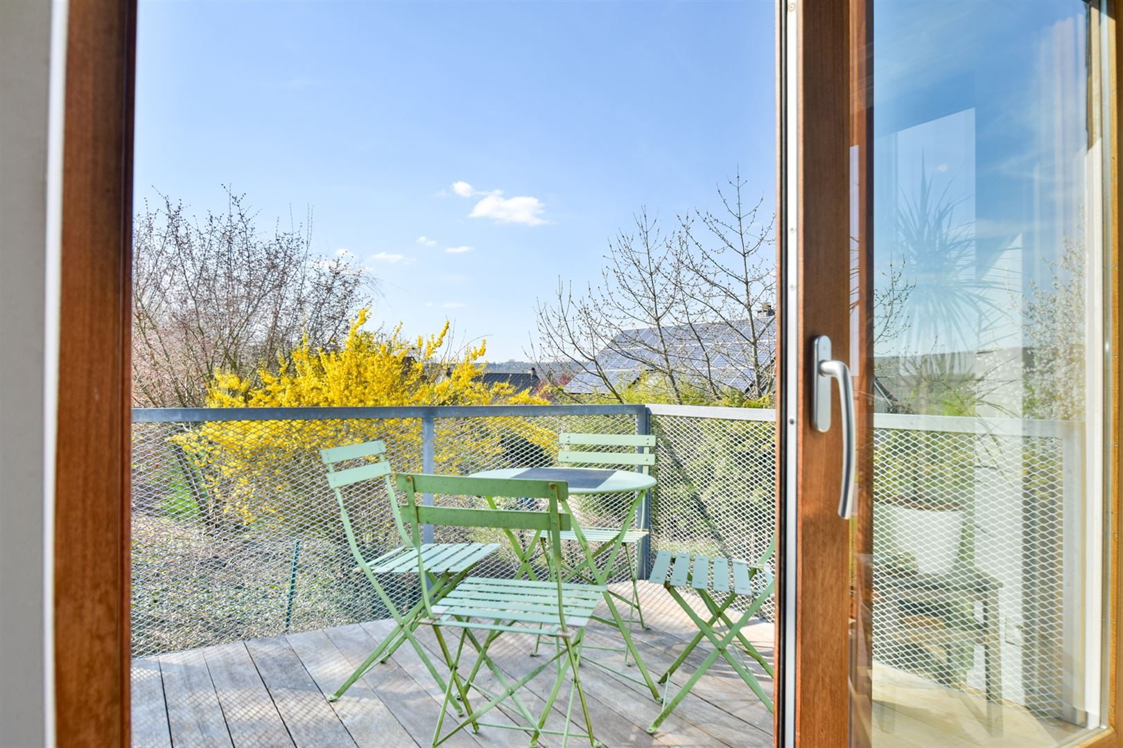 À l’extérieur : Profitez d’une belle terrasse bien orientée et d’un jardin de ± 630 m².