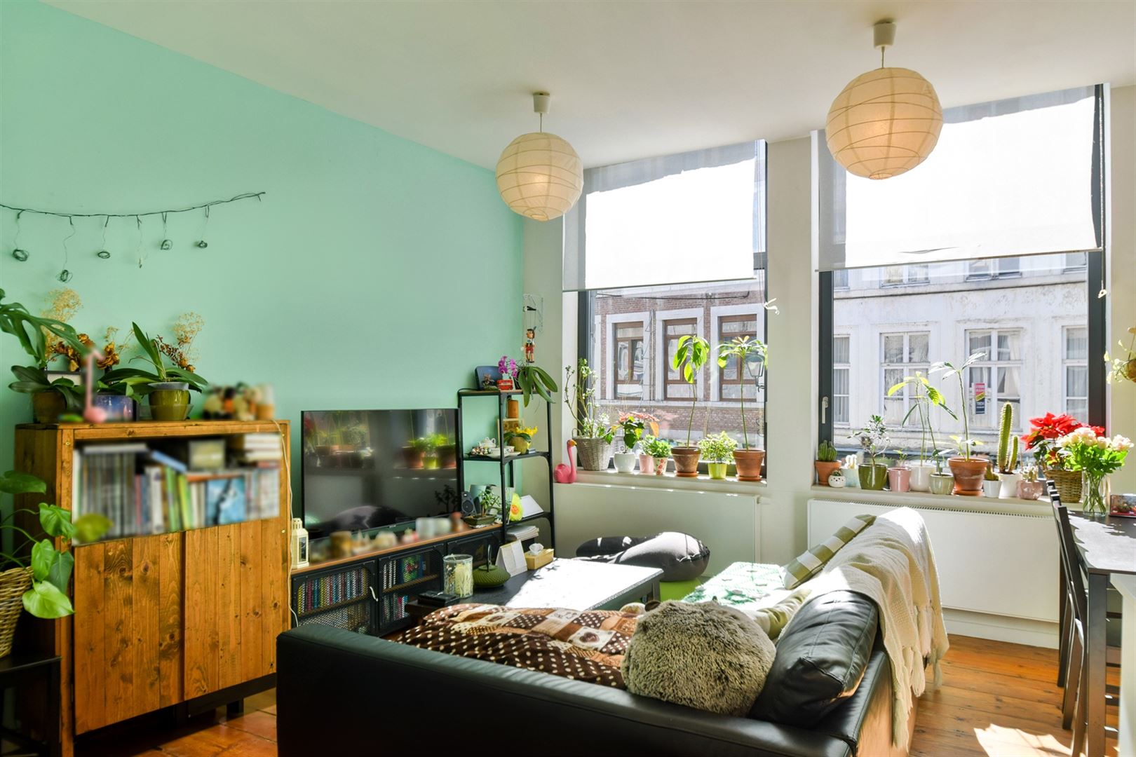 Au 1er étage : lumineux appartement deux chambres de +- 60 m².