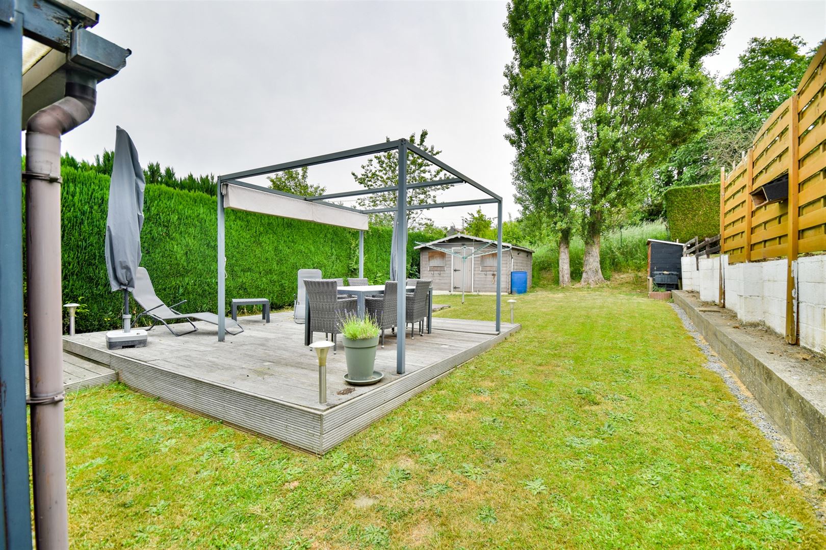 A l'extérieur: une allée latérale, une belle terrasse d'environ 20m², un jardin plat et un abri de jardin.