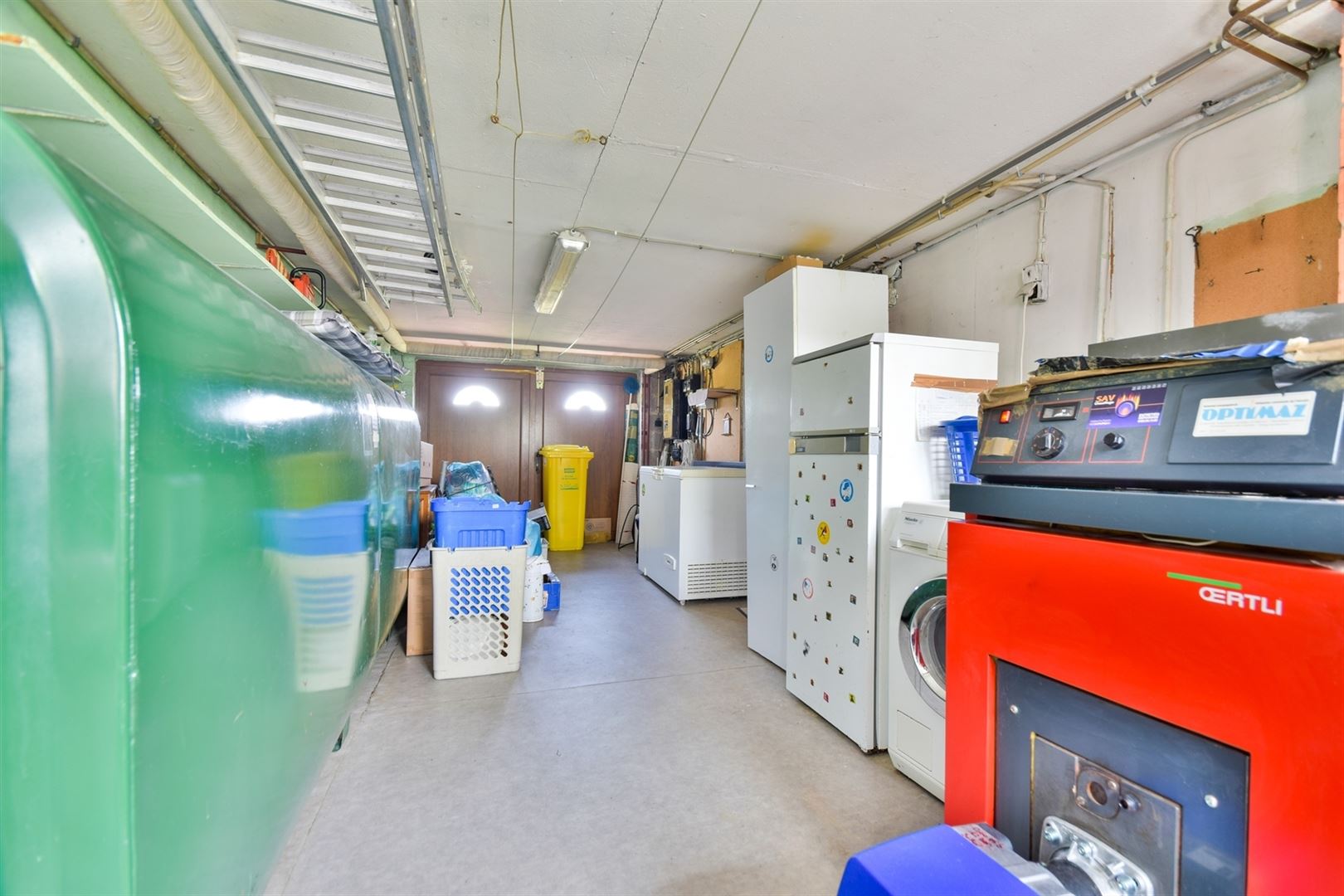 Au rez-de-chaussée: un hall d'entrée desservant un beau séjour de 26m² avec un poêle à bois, une lumineuse cuisine équipée offrant l'accès aux extérieurs, une vaste buanderie/garage de 22m² et une toilette indépendante.