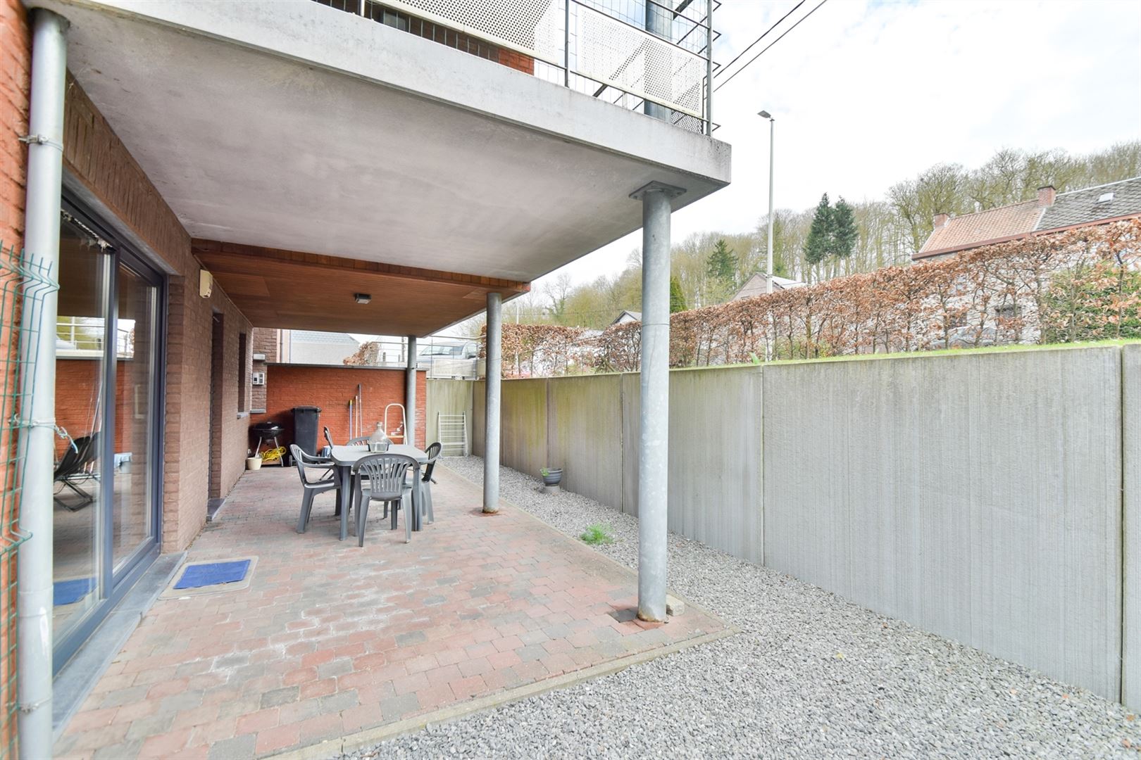 Au rez-de-chaussée une belle pièce de vie de 27m² ouvert sur une cuisine entièrement équipée de 15m², une vaste terrasse de +/- 48m² partiellement couverte, une chambre de 11m², une salle-de-bain avec baignoire, une toilette indépendante et une buanderie.