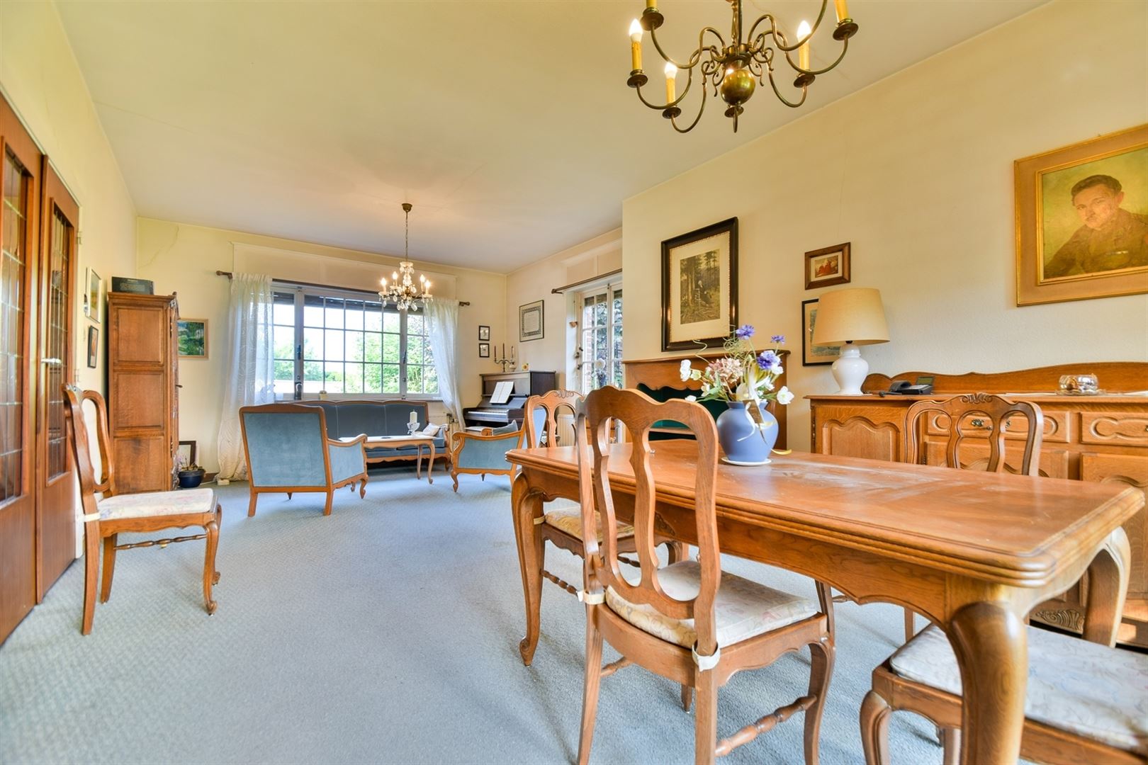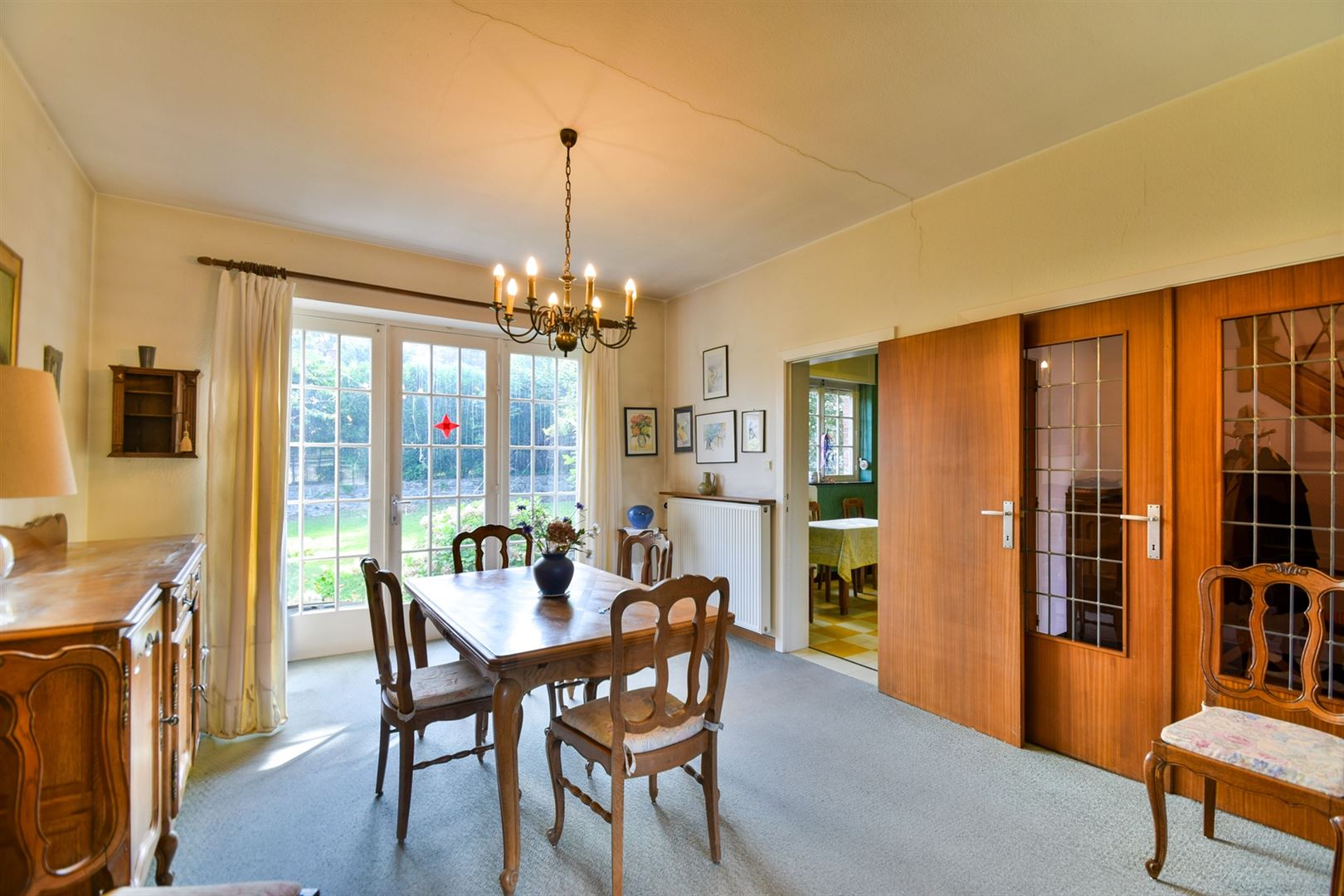 Au rez-de-chaussée : un hall d’entrée desservant un vaste séjour de 31 m² avec accès direct à l’extérieur, une cuisine lumineuse, un bureau de 9 m², une toilette indépendante et deux garages (± 17 m² et 24 m²).