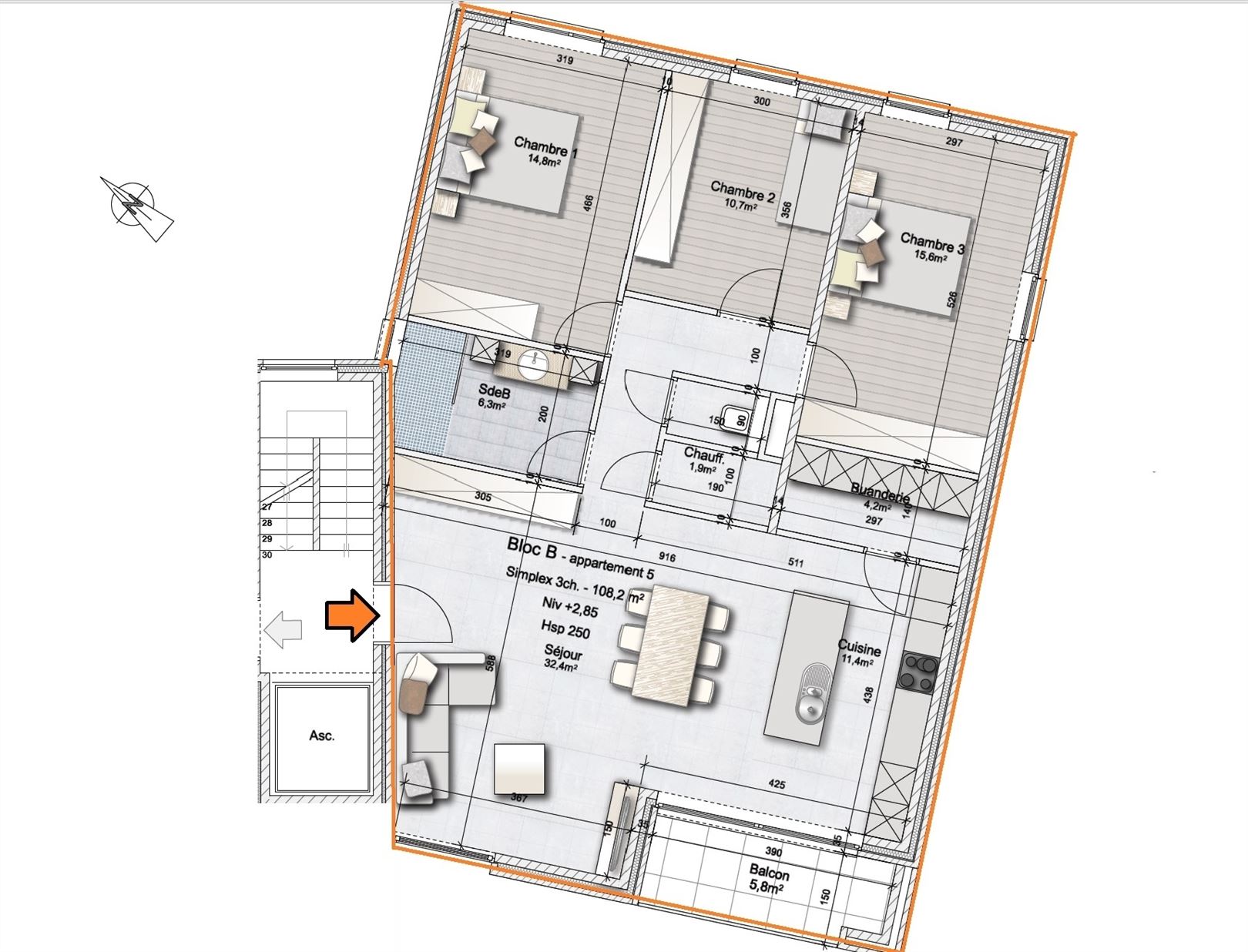 Ce bien, situé au 1er étage, se compose d’un agréable séjour ouvert sur une cuisine hyper équipée avec îlot central, d’un balcon privatif, d’une buanderie, d’une chaufferie, d’un WC indépendant, d’une salle de douche avec douche à l’italienne, et de 3 grandes chambres (14,80m² ; 10,70m² et 15,60m²).