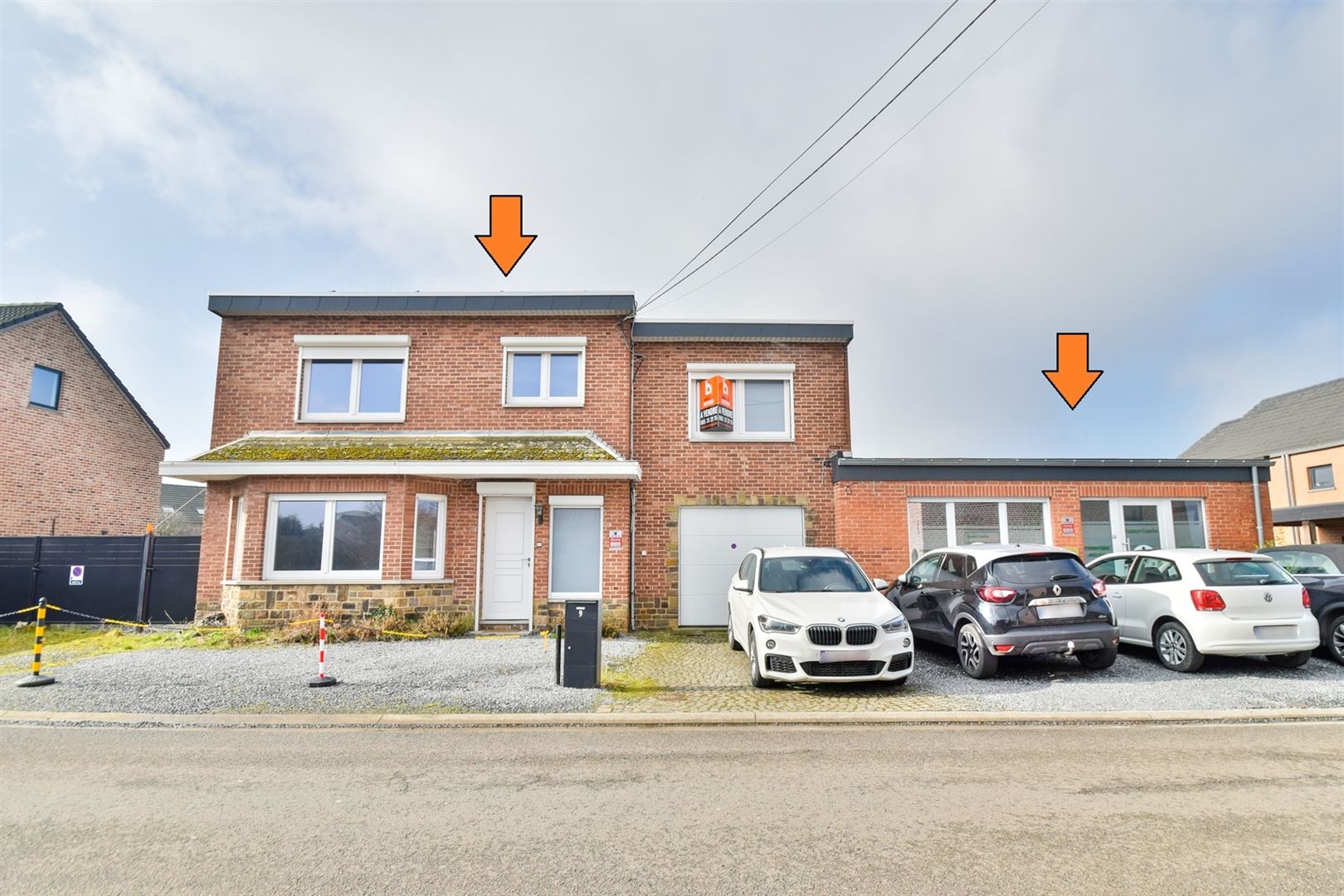 OPTION! OPTION! OPTION! Idéalement situé au calme et à proximité de l'autoroute E42, ensemble constitué d'une vaste maison d'habitation et de grands espaces bureaux qui se compose comme suit: Maison d'habitation avec au rez-de-chaussée, hall d'entrée et vestiaire, spacieux séjour (salon/salle à manger) de ± 47m², cuisine équipée, buanderie/arrière cuisine, salle de douche, garage et hangar de ± 94m². Au 1er étage; hall de nuit, 4 belles chambres de 9m², 15m², 17m² et 18m², bureau/dressing et salle de bains avec douche à l'italienne et baignoire. Bureaux avec salle principale ouverte de ± 88m², salon d'accueil, bureau, deux réserves, coin cuisine et WC indépendant. Ce bien bénéficie également de nombreux emplacements de parking extérieurs, d'une belle terrasse et d'un grand jardin idéalement orientés SUD-OUEST. Caractéristiques techniques: châssis PVC double vitrage (2020), toiture plate neuve (2021) isolée (12cm), 18 panneaux photovoltaïques, électricité CONFORME, volets RDC et 1er étage, porte de garage motorisée, citerne d'eau de pluie. Loyer de l'espace bureaux: 1.100€/mois. Bail commercial en cours. Faire offre à partir de 399.000€ (sous réserve de l'acceptation du propriétaire). Informations données à titre indicatif et non contractuel ! A visiter sans tarder !!! www.immo-bertrand.be