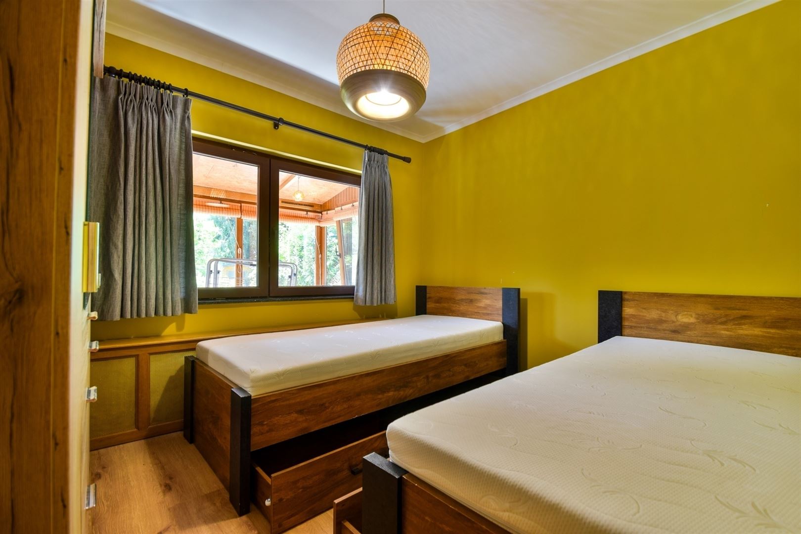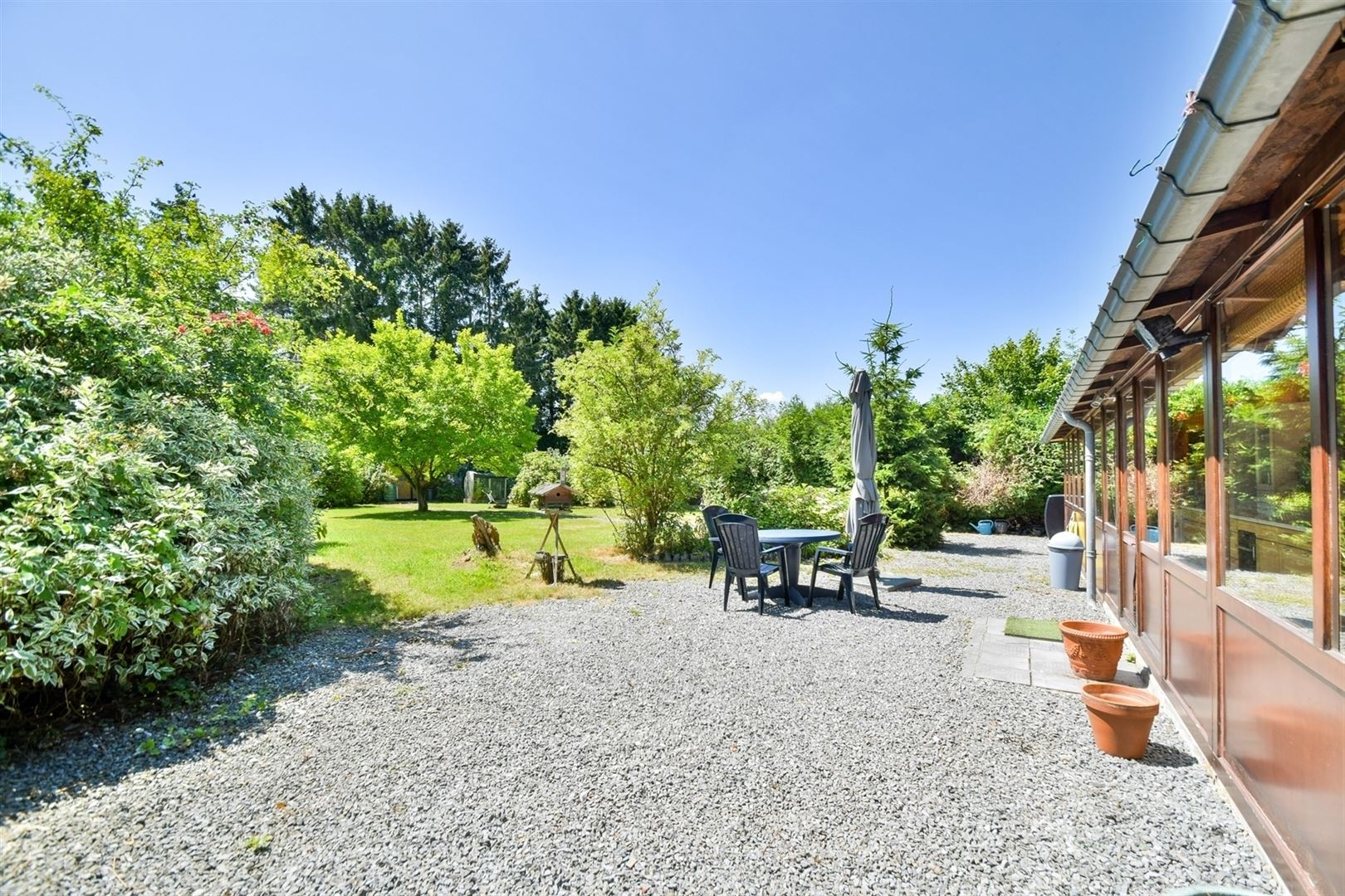 Idéalement située au calme des campagnes condruziennes, spacieuse maison de plain-pied rénovée en 2023 qui se compose comme suit: Hall d'entrée, beau séjour de ± 30m² avec ascenseur, cuisine équipée, grande véranda avec seconde cuisine donnant accès directement au jardin, hall de nuit, 3 belles chambres de 10m², 10m² et 11m², magnifique salle de bains de qualité avec baignoire et douche à l'italienne. Ce bien bénéficie également d'un grand garage avec espace buanderie, de deux emplacements de parking extérieur et d'un beau jardin arboré bien orienté SUD-OUEST. Caractéristiques techniques: chauffage central mazout, poêle à bois, châssis bois double vitrage, toiture et plafonds isolés, bonne performance énergétique (PEB D), ascenseur, électricité CONFORME, citerne d'eau de pluie, adoucisseur d'eau, système d'alarme, porte de garage sectionnelle motorisée. Cette charmante maison vous séduira par son confort de vie avec ses espaces de vie de plain-pied et par son environnement calme. Possibilité d'acquisition du mobilier en option. Faire offre à partir de 359.000€ (sous réserve de l'acceptation des propriétaires). Informations données à titre indicatif et non contractuel. www.immo-bertrand.be
