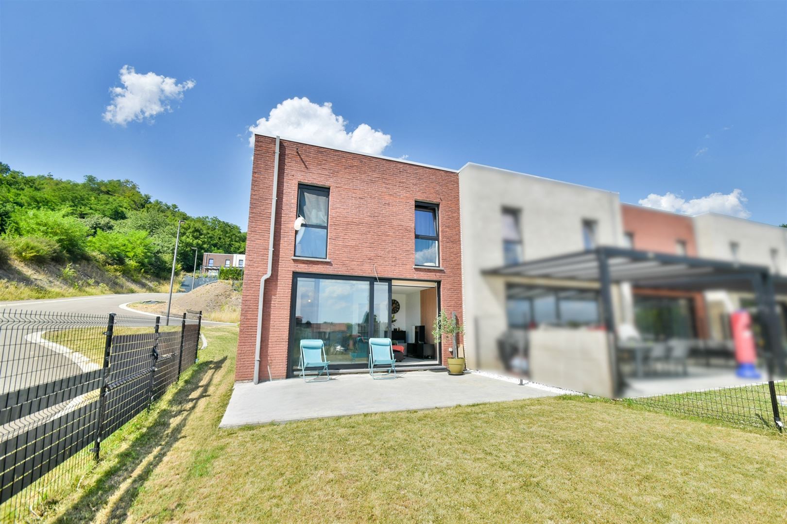 Idéalement située dans un clos résidentiel très calme, jolie maison neuve 3 façades qui se compose comme suit: Au rez-de-chaussée; hall d'entrée avec WC indépendant, spacieux et lumineux séjour ouvert sur une belle cuisine entièrement équipée et buanderie. Au 1er étage; hall de nuit, 3 belles chambres et salle de douche avec WC et double vasque. Ce bien bénéficie également de deux emplacements de parking extérieurs privatifs, d'une agréable terrasse et d'un beau jardin tous deux idéalement orientés PLEIN SUD. Caractéristiques techniques: châssis ALU double vitrage, chauffage au sol au gaz de ville, excellente performance énergétique (PEB B!), VMC simple flux, système d'alarme, raccordement à l'égout. Cette nouvelle construction vous séduira par son équipement moderne, son agencement intérieur et son environnement très calme. Faire offre à partir de 269.000€ (vente sous régime TVA 21%) sous réserve de l'acceptation des propriétaires. Bénéfice de la garantie décennale pour encore 8 ans. Réserve de jouissance d'un mois après la signature des actes. Informations données à titre indicatif et non contractuel. www.immo-bertrand.be
