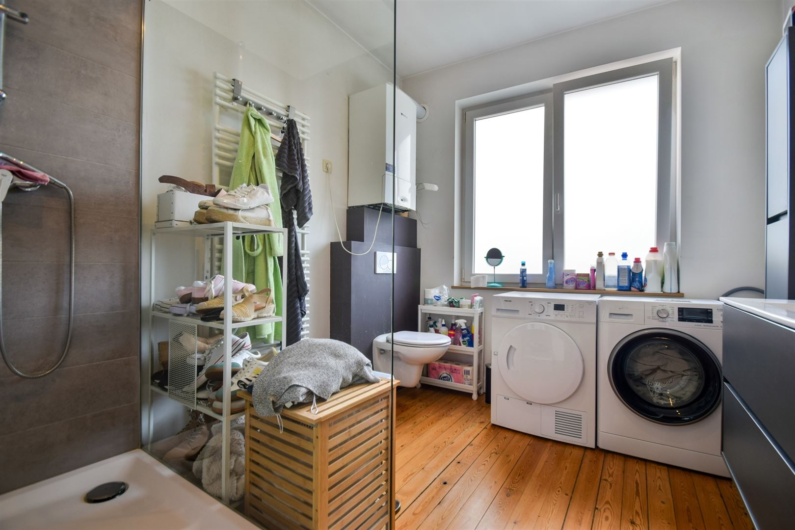 Au 1er étage: une lumineuse chambre et une salle de douche avec coin buanderie.