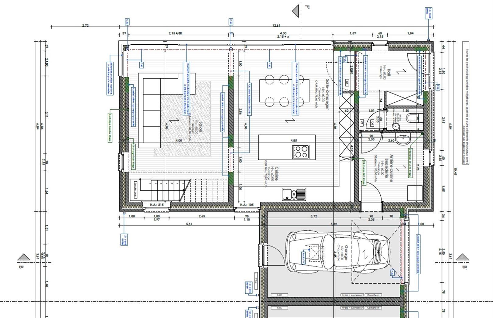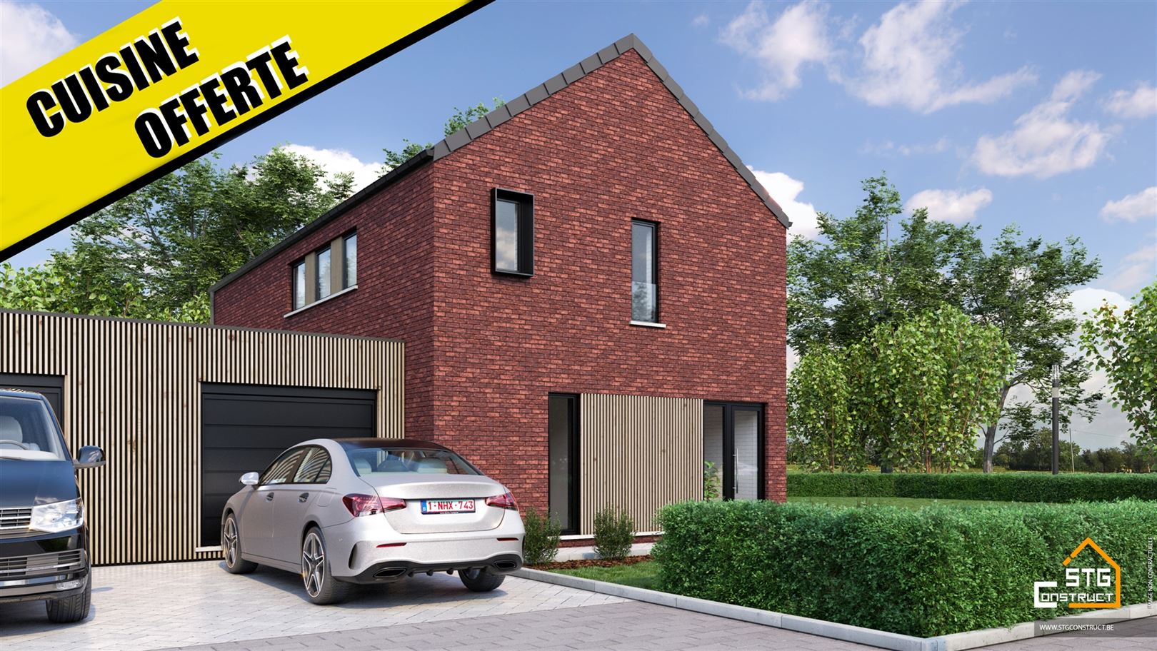 Située dans un clos, en recul de la route, composé de 5 habitations proches de toutes les commodités, nouvelle construction 3 façades (attenante par le garage) composée de : hall d'entrée, WC séparé, spacieux et lumineux séjour, cuisine ouverte sur la salle à manger, buanderie, garage une voiture, hall de nuit, une suite parentale avec dressing et salle de bain, 2 chambres, une salle de douche, un WC séparé et un grenier de rangement avec escalier escamotable. Pompe à chaleur avec chauffage sol, panneaux photovoltaïques, VMC double flux, citerne d'eau d pluie de 10.000 L, maçonnerie sans joint, châssis en PVC et ALU, PEB A. Prix affiché pour la maison hors frais de raccordement (6500,00 euros HTVA), hors frais de Notaire, hors peinture et sol dans les chambres et hors TVA (21%). Cahier des charges et liste de prix détaillée sur demande.