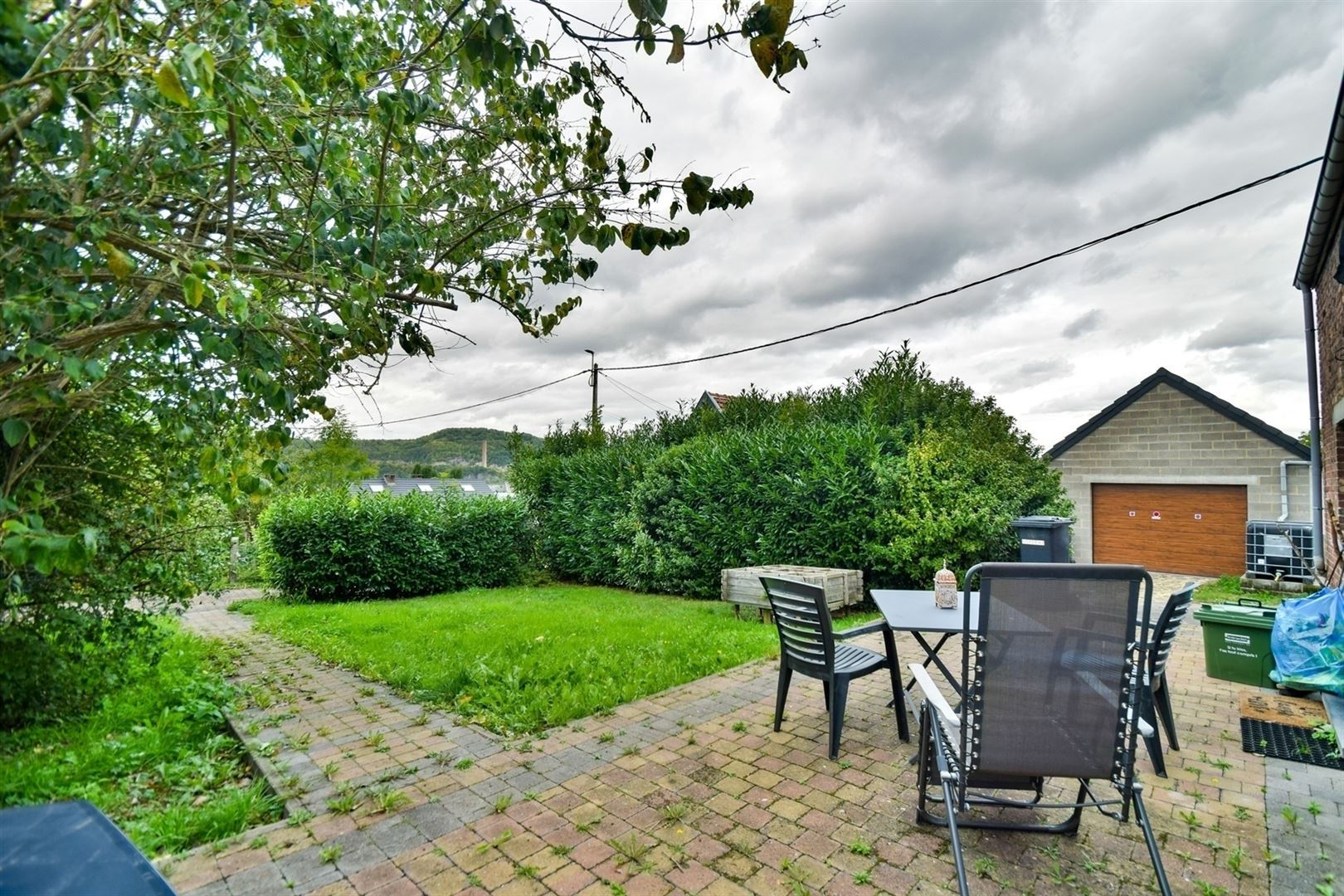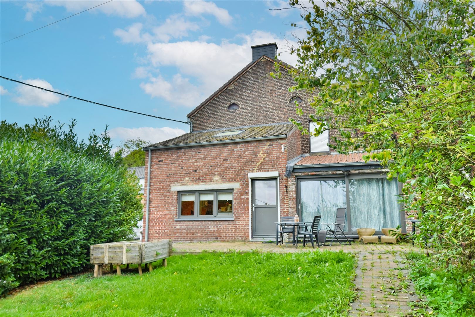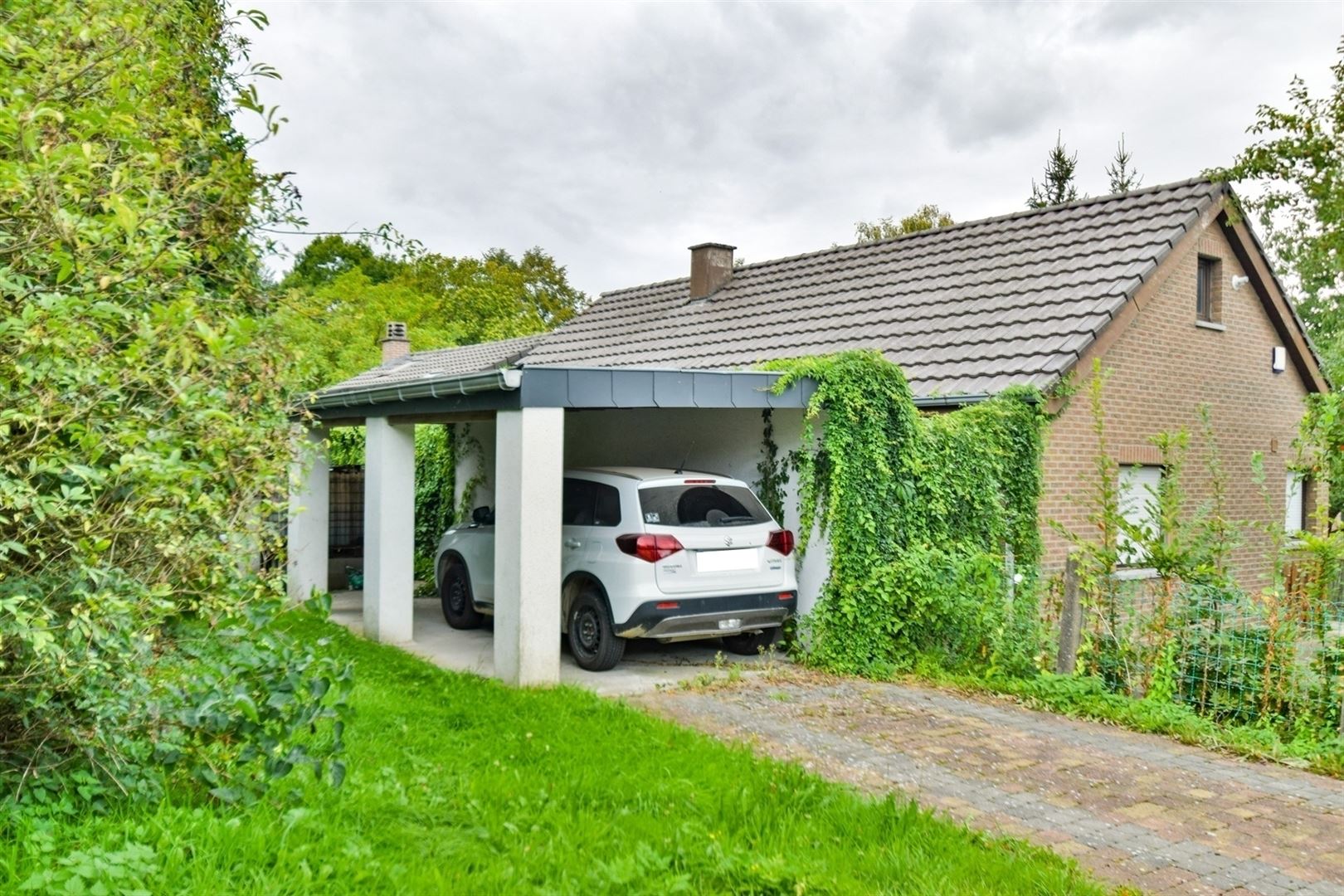 À l’extérieur : beau jardin avec terrasse orientée nord-ouest et un carport.