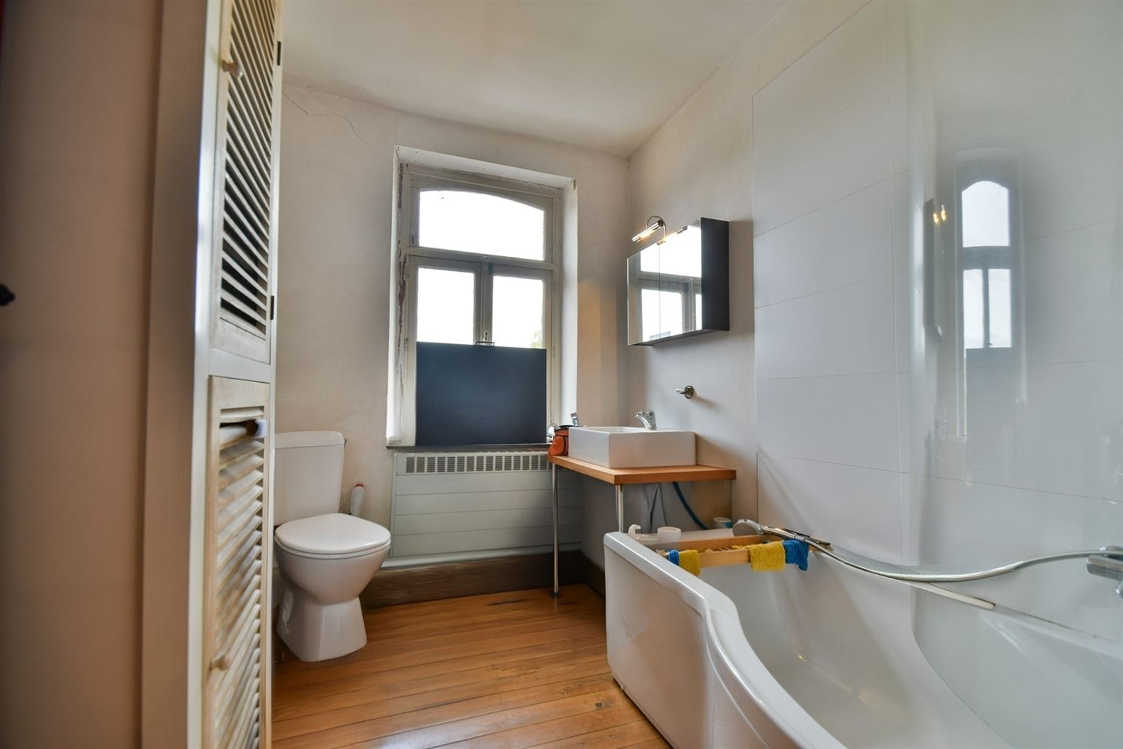 Au 1er étage : un palier desservant deux agréables chambres (±14 m² et 13 m²) ainsi qu’une salle de bain.