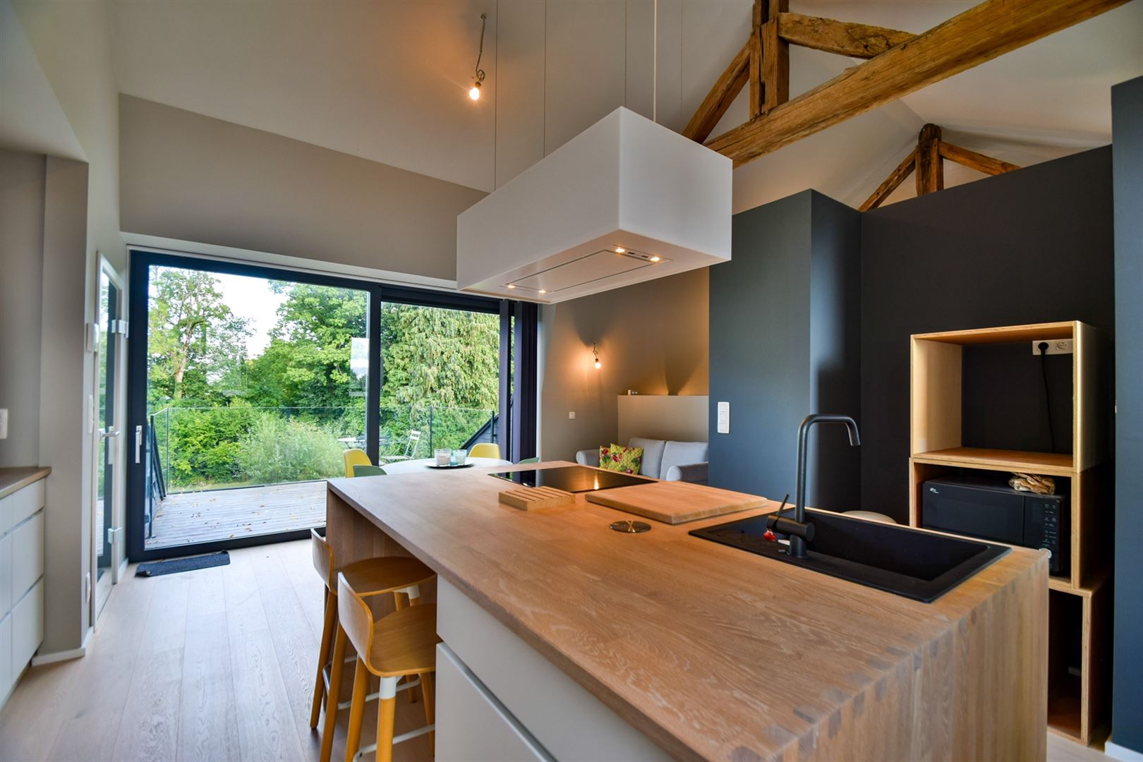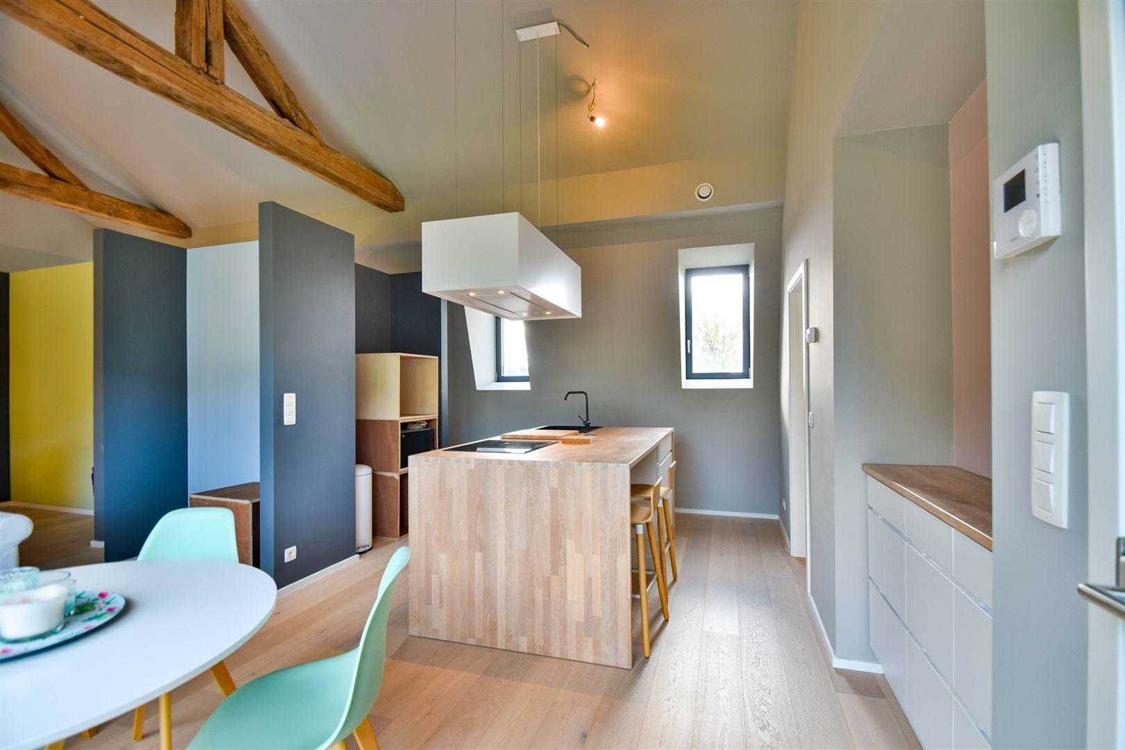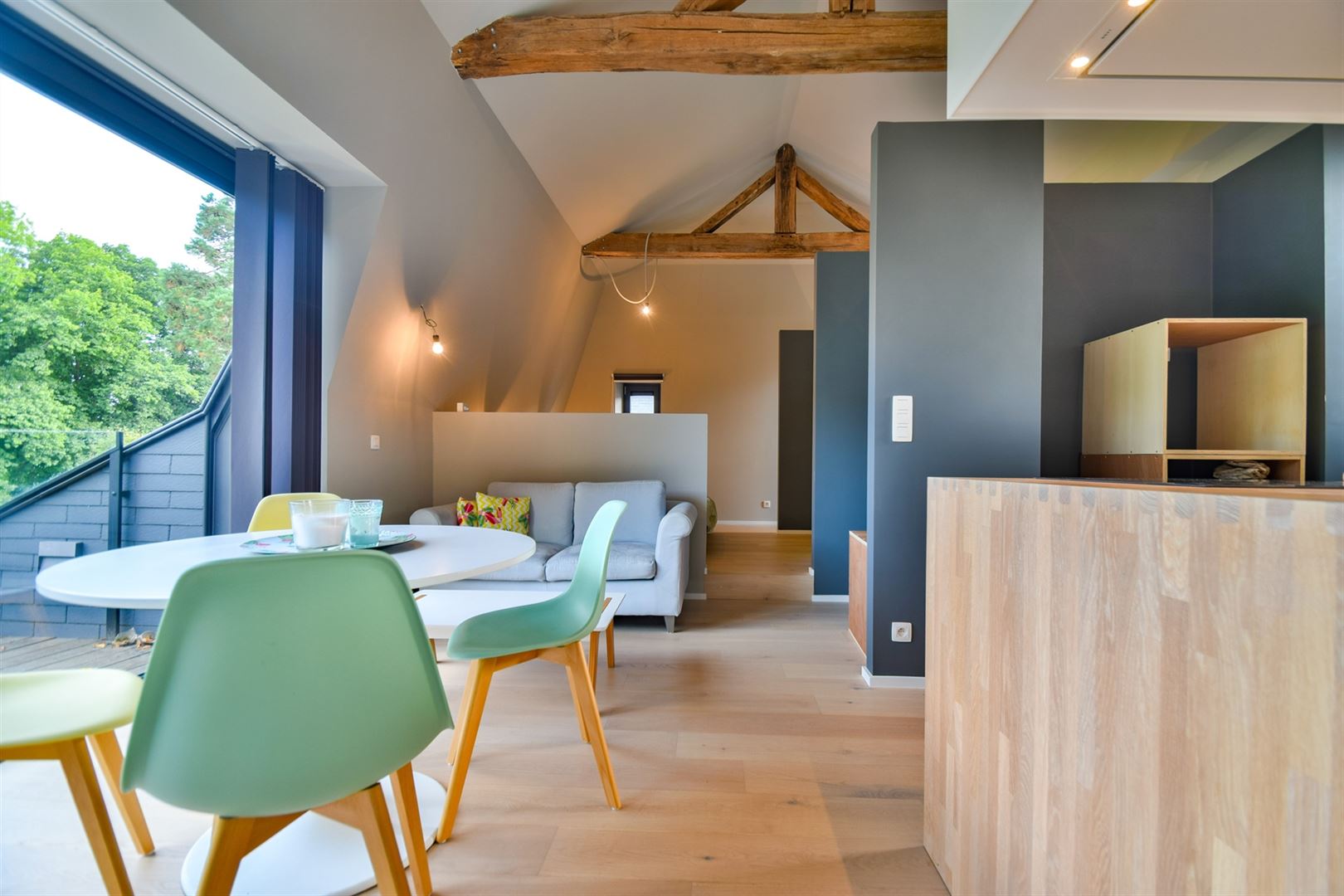 Situé dans le magnifique parc de 4 hectares du Domaine d'Angoxhe, lumineux loft de standing de 60m², proche de toutes les commodités qui se compose de : hall d'entrée, séjour ouvert sur une superbe cuisine équipée sur mesure (électroménagers haut de gamme), 1 chambre avec placards, une salle-de-douche à l'italienne, un espace buanderie et une toilette indépendante. Une grande terrasse en bois avec une superbe vue dégagée sur l'étang et le domaine dont les jardins sont communs et accessibles et un emplacement de parking extérieur. Chauffage central par géothermie au sol, châssis en aluminium double vitrage et électricité conforme. Cet appartement vous séduira par sa situation, son confort technique et son cadre de vie unique. www.immo-bertrand.be