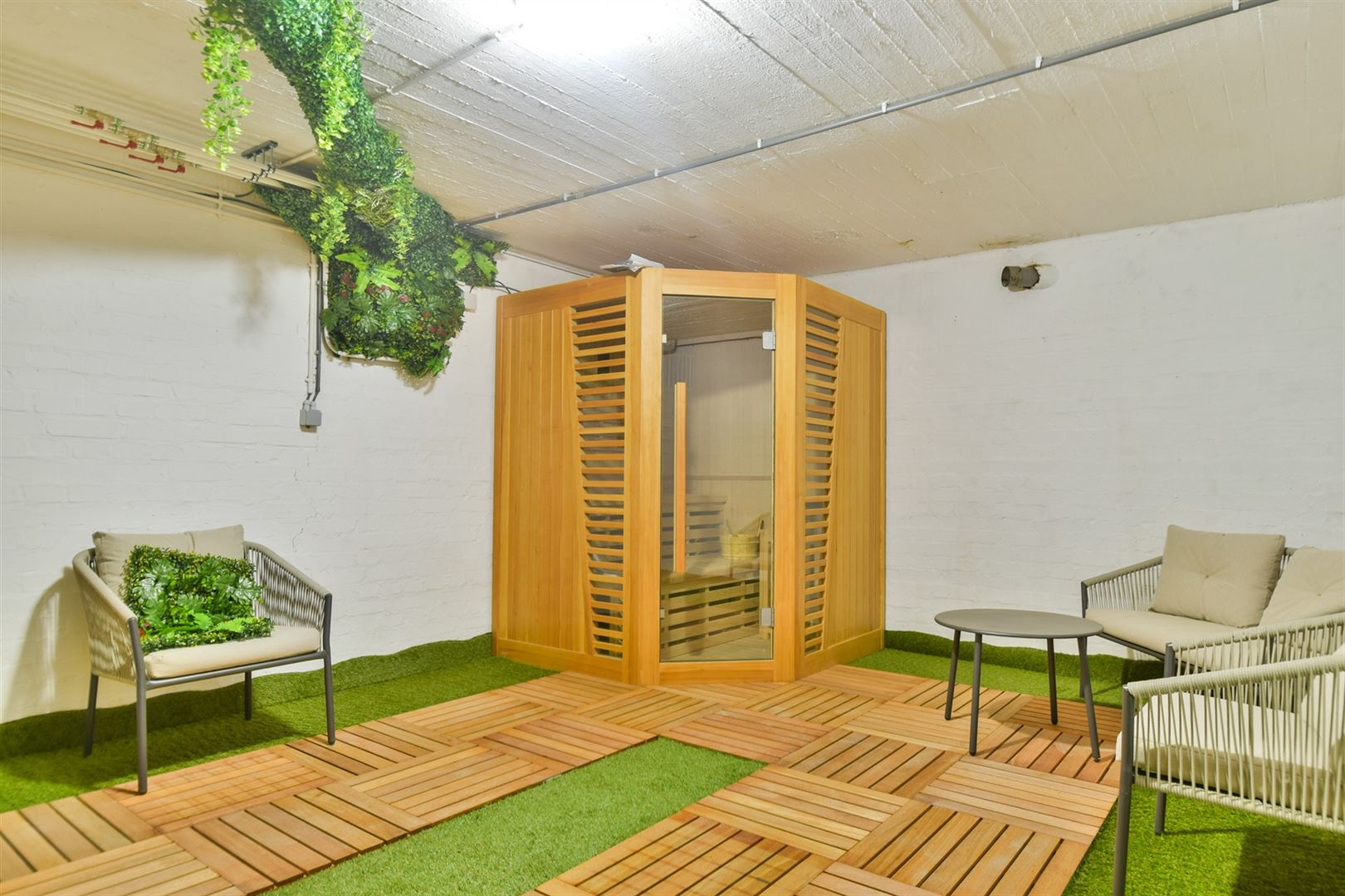 Au sous-sol se trouvent une cave de stockage, une salle de sport entièrement équipée et un sauna.