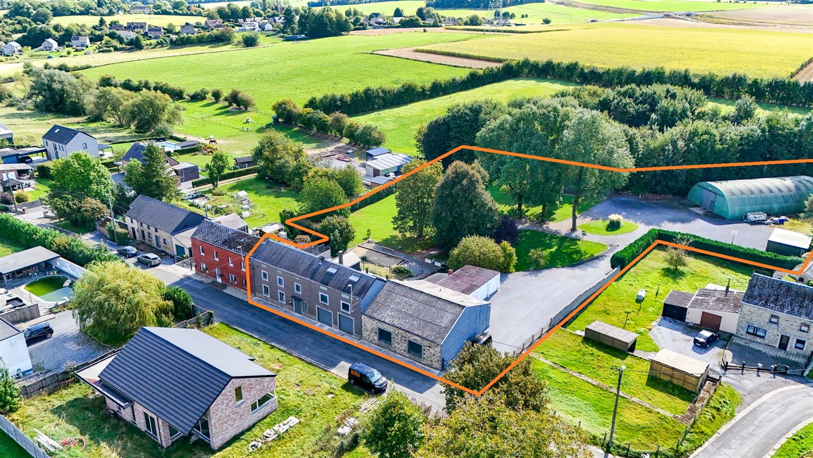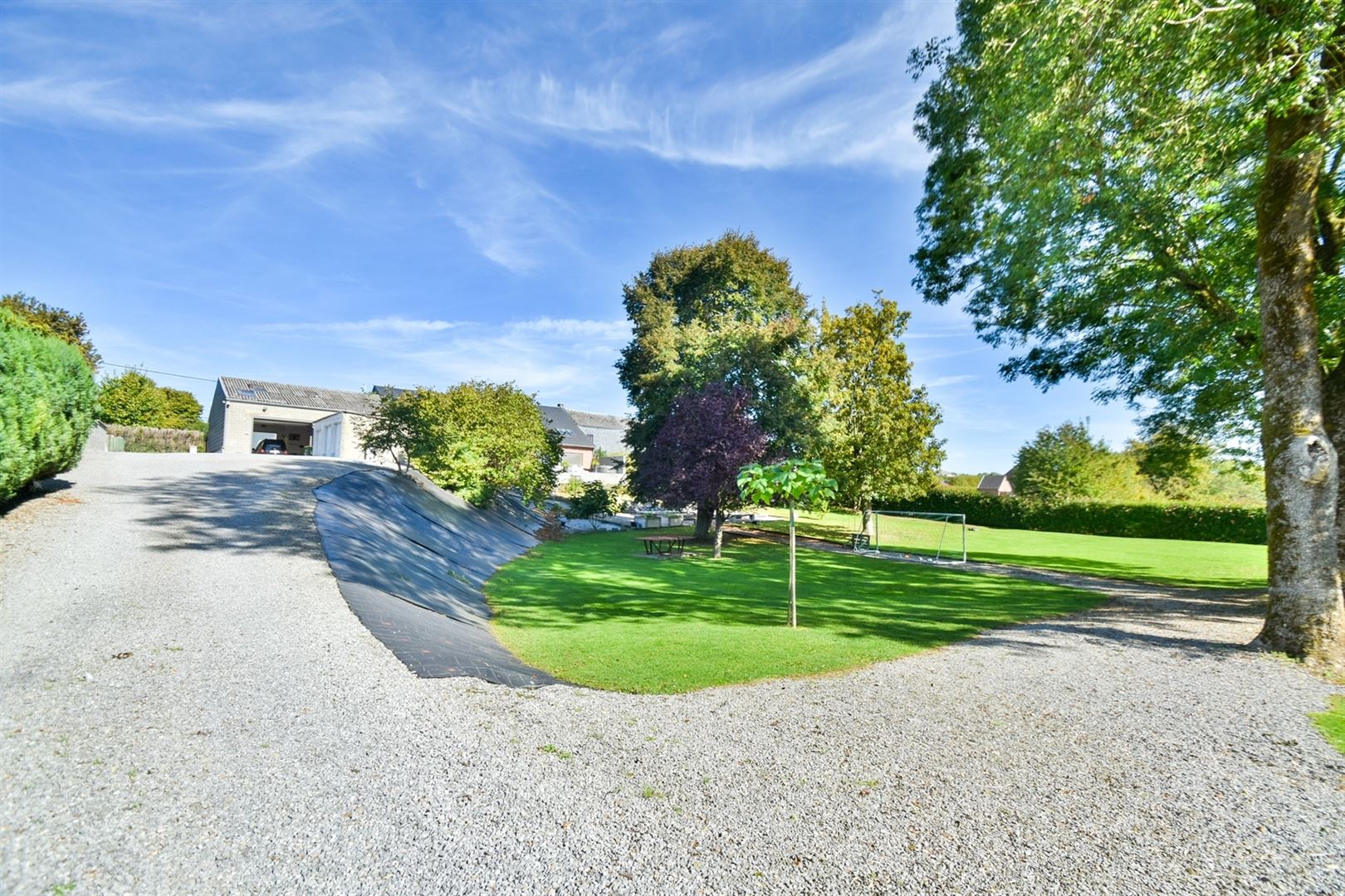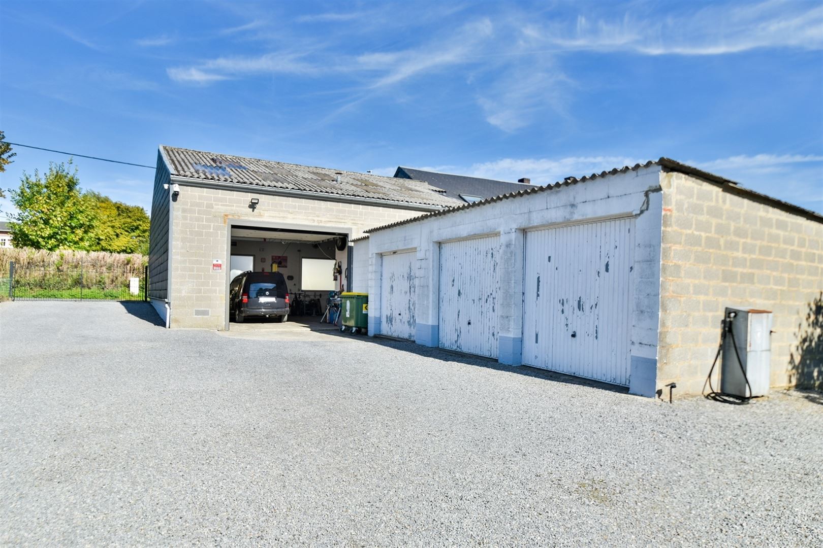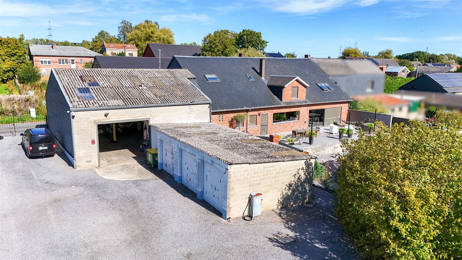Idéalement située dans un quartier très calme, magnifique propriété implantée sur un terrain de ± 6.188m² qui se compose d'une spacieuse maison d'habitation, d'un garage/atelier semi-professionnel avec pont automobile, d'un grand hangar de 300m², de plusieurs garages et d'un beau parc arboré. Au rez-de-chaussée; hall d'entrée, vestiaire, WC indépendant, chaleureux salon de 28m², salle à manger ouverte sur une lumineuse cuisine entièrement équipée (frigo américain, double four, chauffe plats, lave-vaisselle, taque induction avec hotte intégrée BORA, cave à vin,...), buanderie et deux garages. Au 1er étage; 2 grands paliers de nuit aménageables en bureau/dressing; 4 belles chambres de 11m², 16m², 17m² et 23m² dont une avec dressing, 2 salle de bains et débarras. Au 2ème étage; une cinquième chambre de 17m², bureau et grand grenier aménageable. Cette jolie villa bénéficie également d'une cave, d'une très belle terrasse aménagée et d'un magnifique jardin de ± 3.350m² idéalement orientés plein SUD. Caractéristiques techniques: châssis PVC et ALU double vitrage, CC mazout, cassette à bois, poêle à pellets, toiture en ardoises naturelles isolée, murs intérieurs isolés, système d'alarme, 4 caméras, visiophone, robot tondeuse, citerne d'eau de pluie (3.000 litres), 3 portes de garages sectionnelles motorisées. Ce bien rare vous séduira par son grand volume habitable, par ses nombreuses possibilités d'affectation et par son environnement paisible. Faire offre à partir de 595.000€.