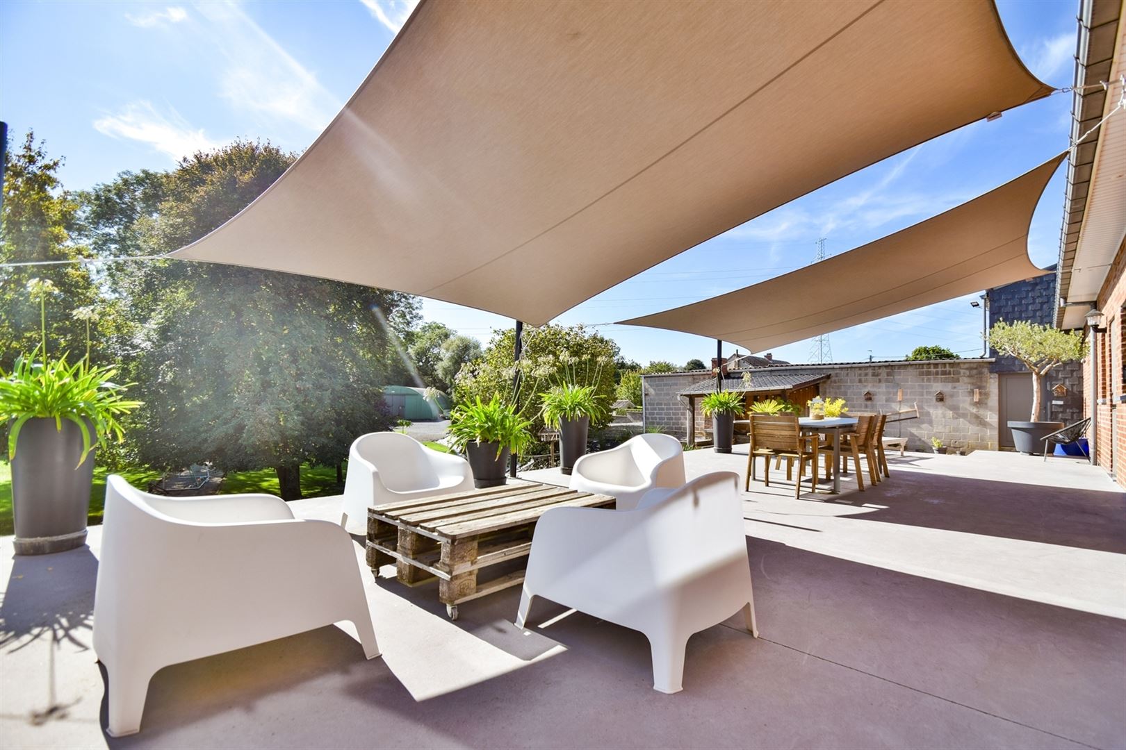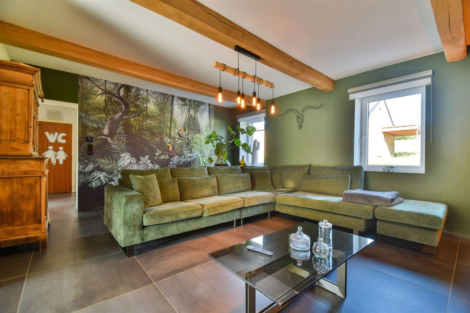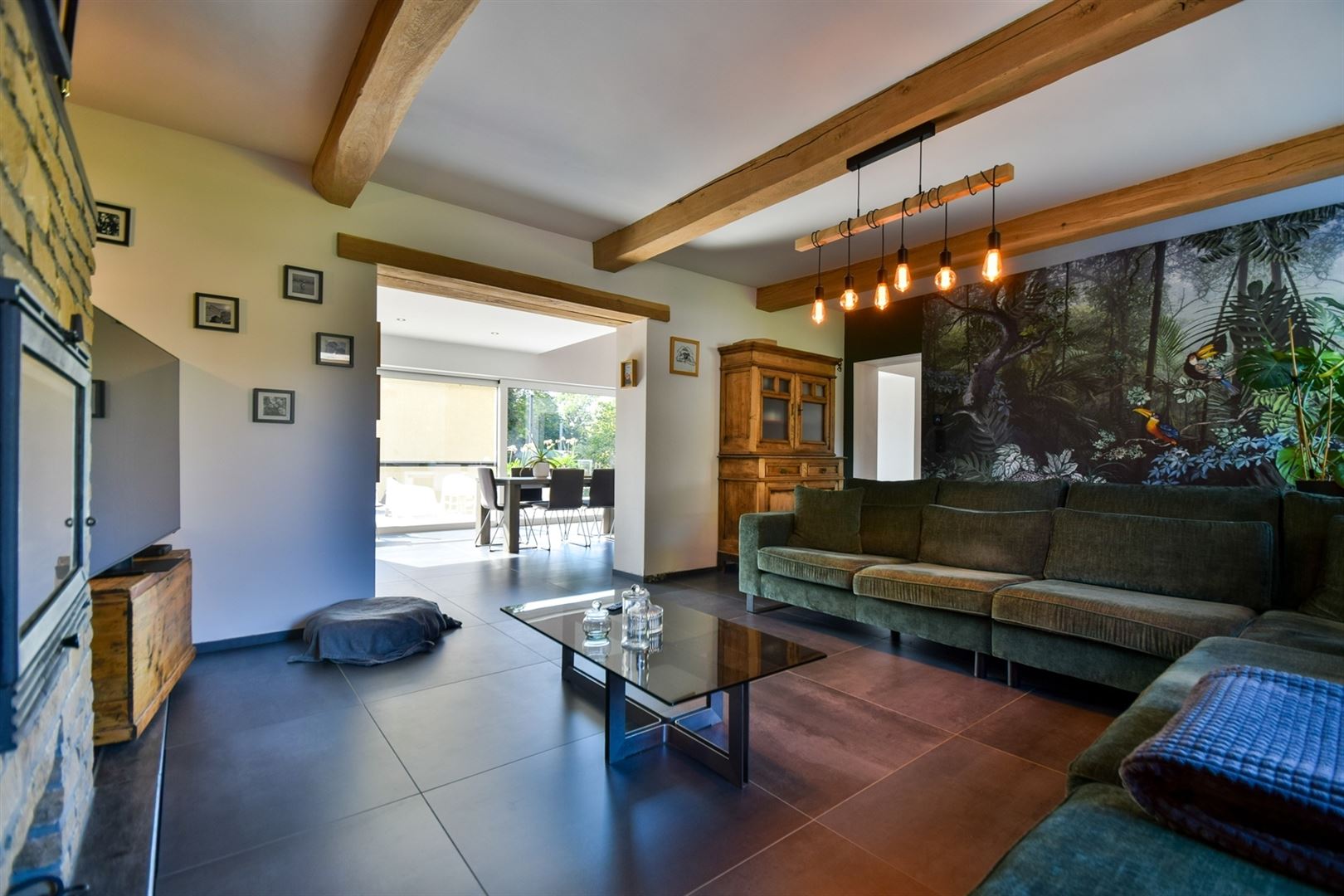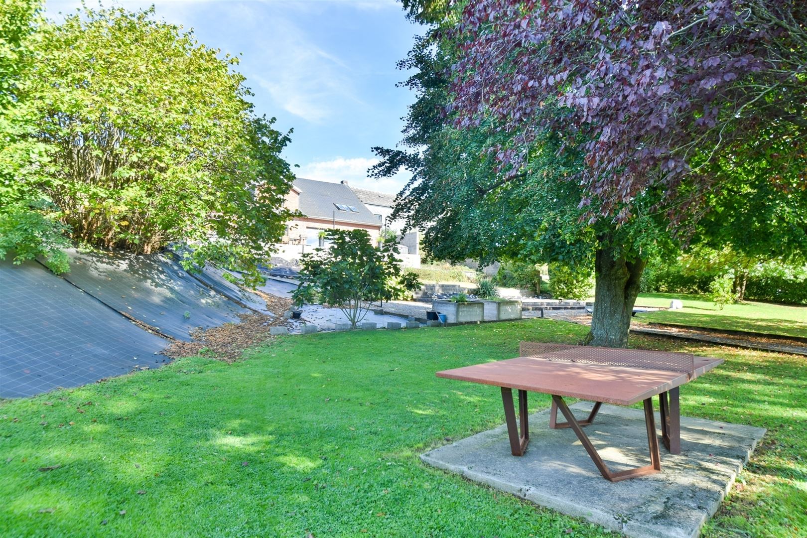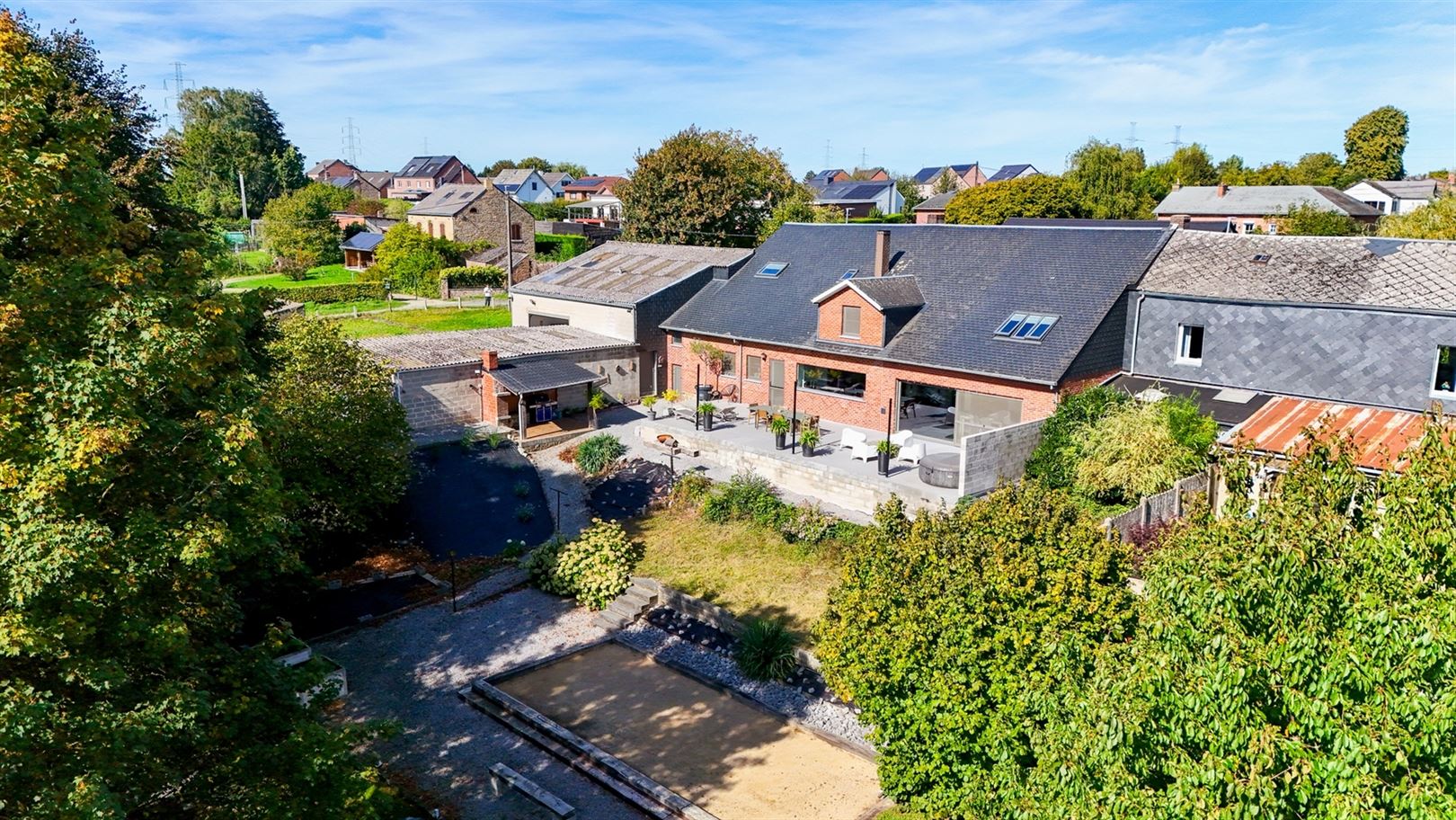 Idéalement située dans un quartier très calme, magnifique propriété implantée sur un terrain de ± 6.188m² qui se compose d'une spacieuse maison d'habitation, d'un garage/atelier semi-professionnel avec pont automobile, d'un grand hangar de 300m², de plusieurs garages et d'un beau parc arboré. Au rez-de-chaussée; hall d'entrée, vestiaire, WC indépendant, chaleureux salon de 28m², salle à manger ouverte sur une lumineuse cuisine entièrement équipée (frigo américain, double four, chauffe plats, lave-vaisselle, taque induction avec hotte intégrée BORA, cave à vin,...), buanderie et deux garages. Au 1er étage; 2 grands paliers de nuit aménageables en bureau/dressing; 4 belles chambres de 11m², 16m², 17m² et 23m² dont une avec dressing, 2 salle de bains et débarras. Au 2ème étage; une cinquième chambre de 17m², bureau et grand grenier aménageable. Cette jolie villa bénéficie également d'une cave, d'une très belle terrasse aménagée et d'un magnifique jardin de ± 3.350m² idéalement orientés plein SUD. Caractéristiques techniques: châssis PVC et ALU double vitrage, CC mazout, cassette à bois, poêle à pellets, toiture en ardoises naturelles isolée, murs intérieurs isolés, système d'alarme, 4 caméras, visiophone, robot tondeuse, citerne d'eau de pluie (3.000 litres), 3 portes de garages sectionnelles motorisées. Ce bien rare vous séduira par son grand volume habitable, par ses nombreuses possibilités d'affectation et par son environnement paisible. Faire offre à partir de 595.000€.
