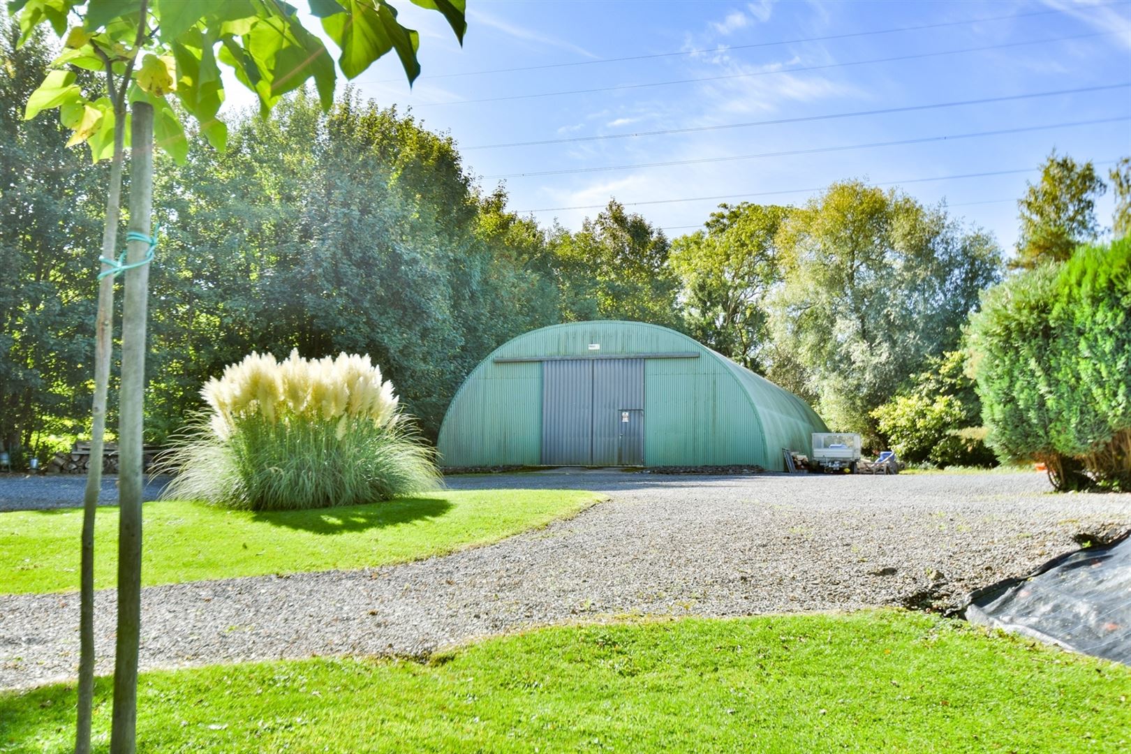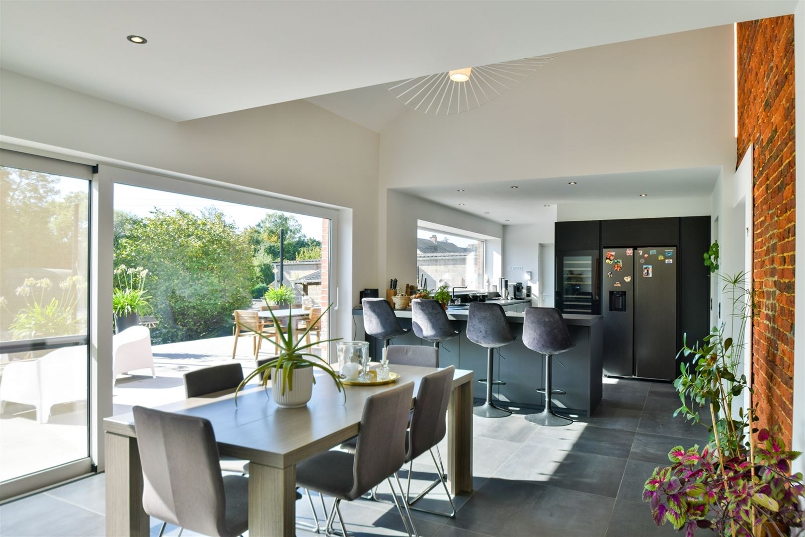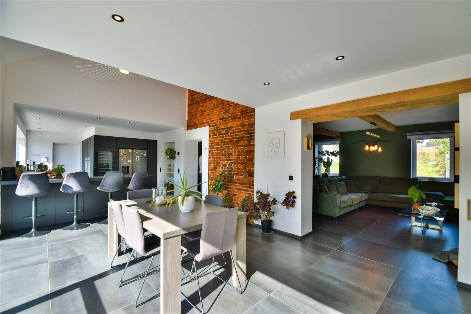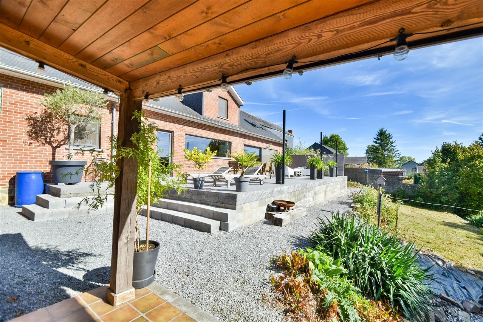 Idéalement située dans un quartier très calme, magnifique propriété implantée sur un terrain de ± 6.188m² qui se compose d'une spacieuse maison d'habitation, d'un garage/atelier semi-professionnel avec pont automobile, d'un grand hangar de 300m², de plusieurs garages et d'un beau parc arboré. Au rez-de-chaussée; hall d'entrée, vestiaire, WC indépendant, chaleureux salon de 28m², salle à manger ouverte sur une lumineuse cuisine entièrement équipée (frigo américain, double four, chauffe plats, lave-vaisselle, taque induction avec hotte intégrée BORA, cave à vin,...), buanderie et deux garages. Au 1er étage; 2 grands paliers de nuit aménageables en bureau/dressing; 4 belles chambres de 11m², 16m², 17m² et 23m² dont une avec dressing, 2 salle de bains et débarras. Au 2ème étage; une cinquième chambre de 17m², bureau et grand grenier aménageable. Cette jolie villa bénéficie également d'une cave, d'une très belle terrasse aménagée et d'un magnifique jardin de ± 3.350m² idéalement orientés plein SUD. Caractéristiques techniques: châssis PVC et ALU double vitrage, CC mazout, cassette à bois, poêle à pellets, toiture en ardoises naturelles isolée, murs intérieurs isolés, système d'alarme, 4 caméras, visiophone, robot tondeuse, citerne d'eau de pluie (3.000 litres), 3 portes de garages sectionnelles motorisées. Ce bien rare vous séduira par son grand volume habitable, par ses nombreuses possibilités d'affectation et par son environnement paisible. Faire offre à partir de 595.000€.