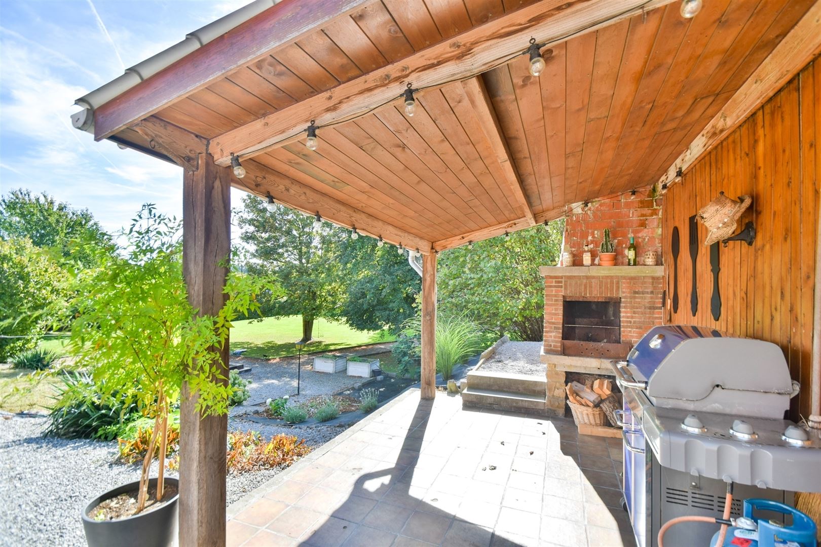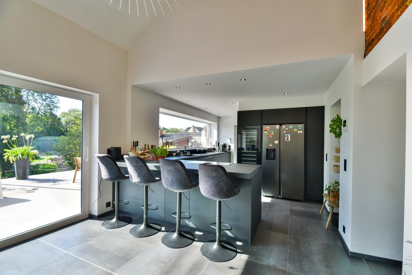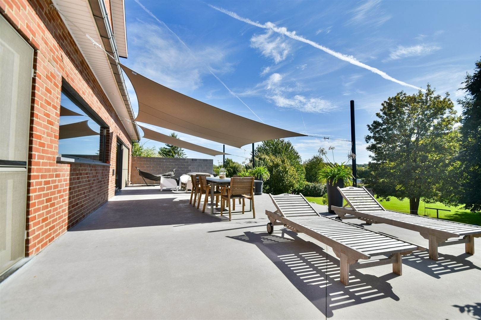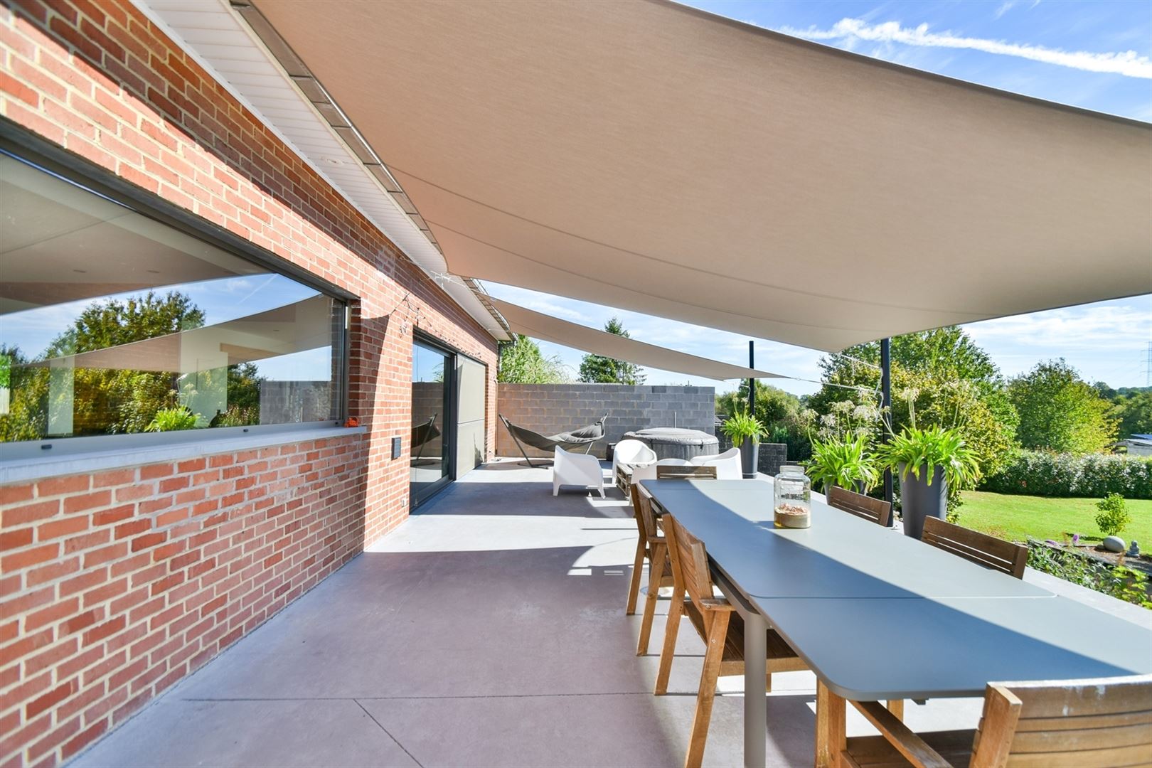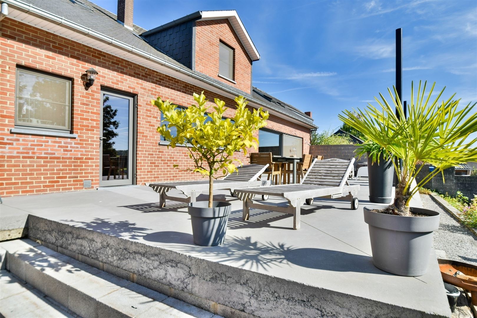 Idéalement située dans un quartier très calme, magnifique propriété implantée sur un terrain de ± 6.188m² qui se compose d'une spacieuse maison d'habitation, d'un garage/atelier semi-professionnel avec pont automobile, d'un grand hangar de 300m², de plusieurs garages et d'un beau parc arboré. Au rez-de-chaussée; hall d'entrée, vestiaire, WC indépendant, chaleureux salon de 28m², salle à manger ouverte sur une lumineuse cuisine entièrement équipée (frigo américain, double four, chauffe plats, lave-vaisselle, taque induction avec hotte intégrée BORA, cave à vin,...), buanderie et deux garages. Au 1er étage; 2 grands paliers de nuit aménageables en bureau/dressing; 4 belles chambres de 11m², 16m², 17m² et 23m² dont une avec dressing, 2 salle de bains et débarras. Au 2ème étage; une cinquième chambre de 17m², bureau et grand grenier aménageable. Cette jolie villa bénéficie également d'une cave, d'une très belle terrasse aménagée et d'un magnifique jardin de ± 3.350m² idéalement orientés plein SUD. Caractéristiques techniques: châssis PVC et ALU double vitrage, CC mazout, cassette à bois, poêle à pellets, toiture en ardoises naturelles isolée, murs intérieurs isolés, système d'alarme, 4 caméras, visiophone, robot tondeuse, citerne d'eau de pluie (3.000 litres), 3 portes de garages sectionnelles motorisées. Ce bien rare vous séduira par son grand volume habitable, par ses nombreuses possibilités d'affectation et par son environnement paisible. Faire offre à partir de 595.000€.
