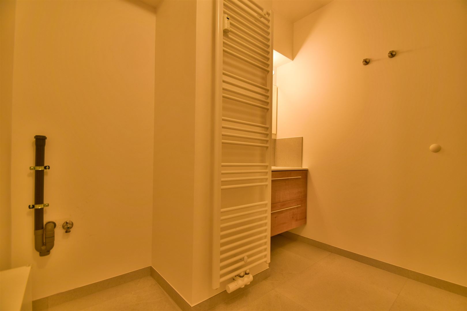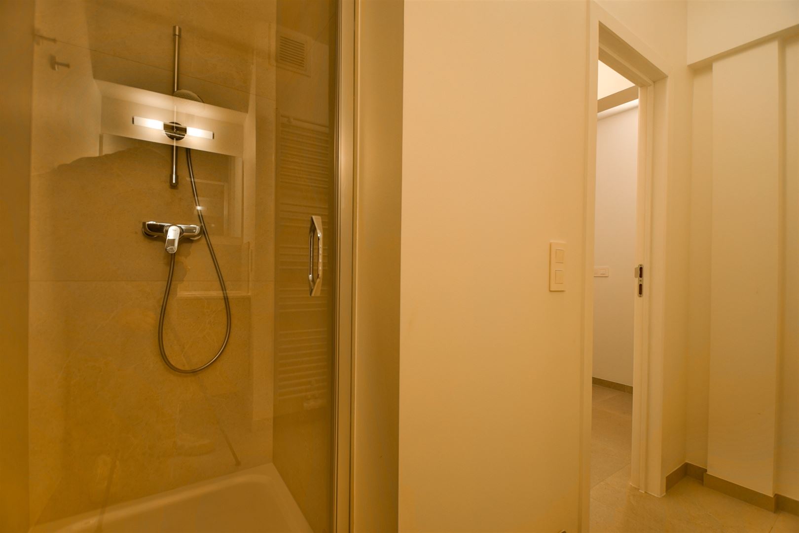 L’appartement se trouve au 1er étage d’une résidence calme, sécurisée et bien entretenue. Il se compose d’un hall d’entrée, d’un WC séparé, d’une salle de douche avec espace pour une machine à laver et un sèche-linge, d’un séjour pouvant également servir de bureau, d’un living ouvert sur une cuisine équipée (environ 23 m²) donnant accès à un balcon de ± 7 m², d’une grande buanderie e ± 4 m² et d’une belle chambre de 13,35 m².