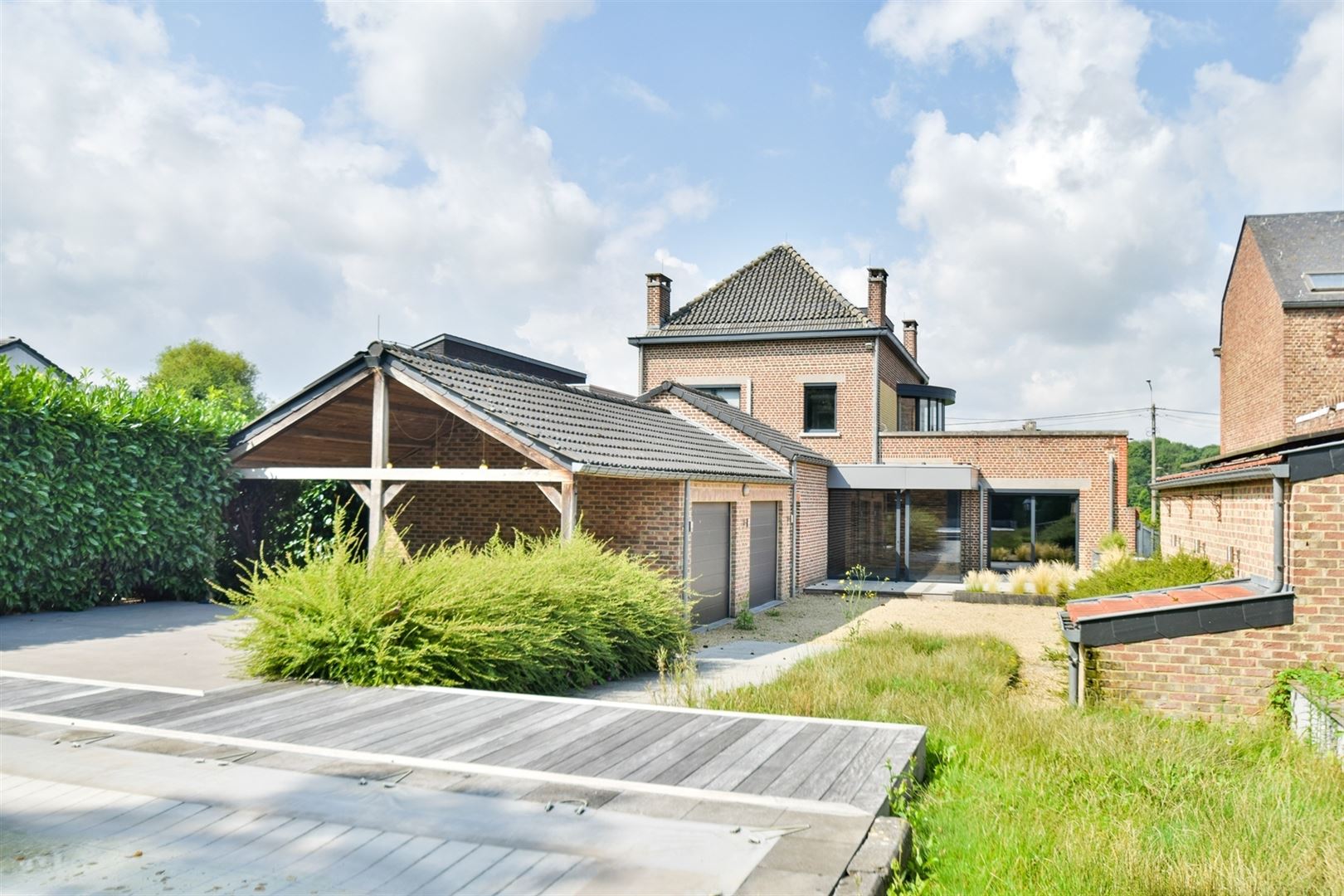 Extérieurs : grand parking, piscine, pergola et magnifique terrain arboré de ± 48 ares, idéal pour profiter des beaux jours.