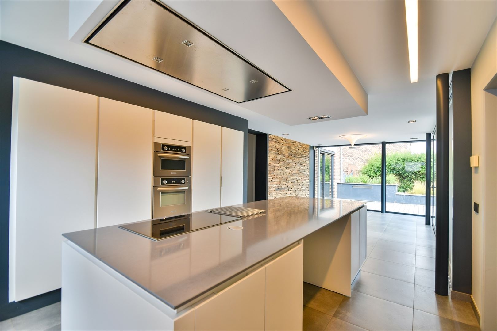 Rez-de-chaussée : hall d’entrée, lumineux salon de 36 m², vaste salle à manger de 37 m² avec cuisine entièrement équipée, bureau, buanderie avec WC indépendant, salle de bain et deux garages.