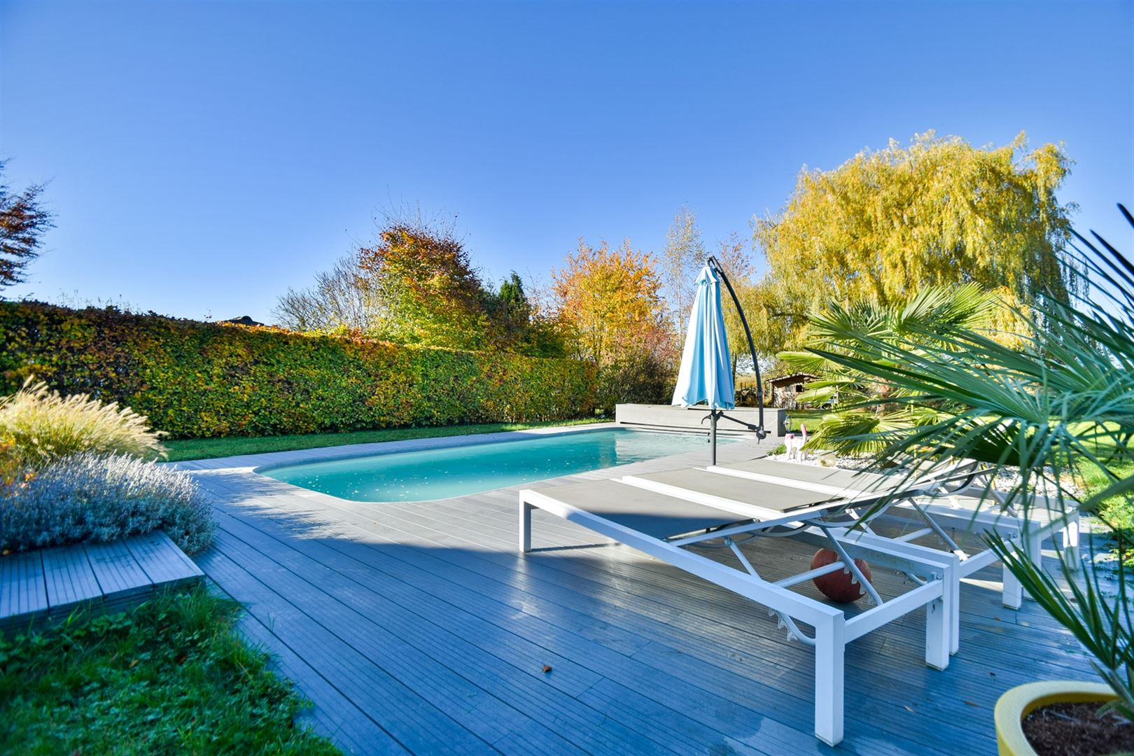 À l’extérieur, un magnifique jardin agrémenté d’une grande terrasse et d’une piscine (8x4) chauffée via pompe à chaleur, ainsi que plusieurs emplacements de parking à l’avant de la propriété.