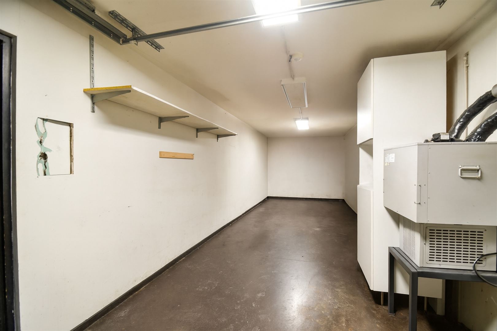 Grande réserve avec accès extérieur et porte sectionnelle, parfaite pour les livraisons ou le stockage.