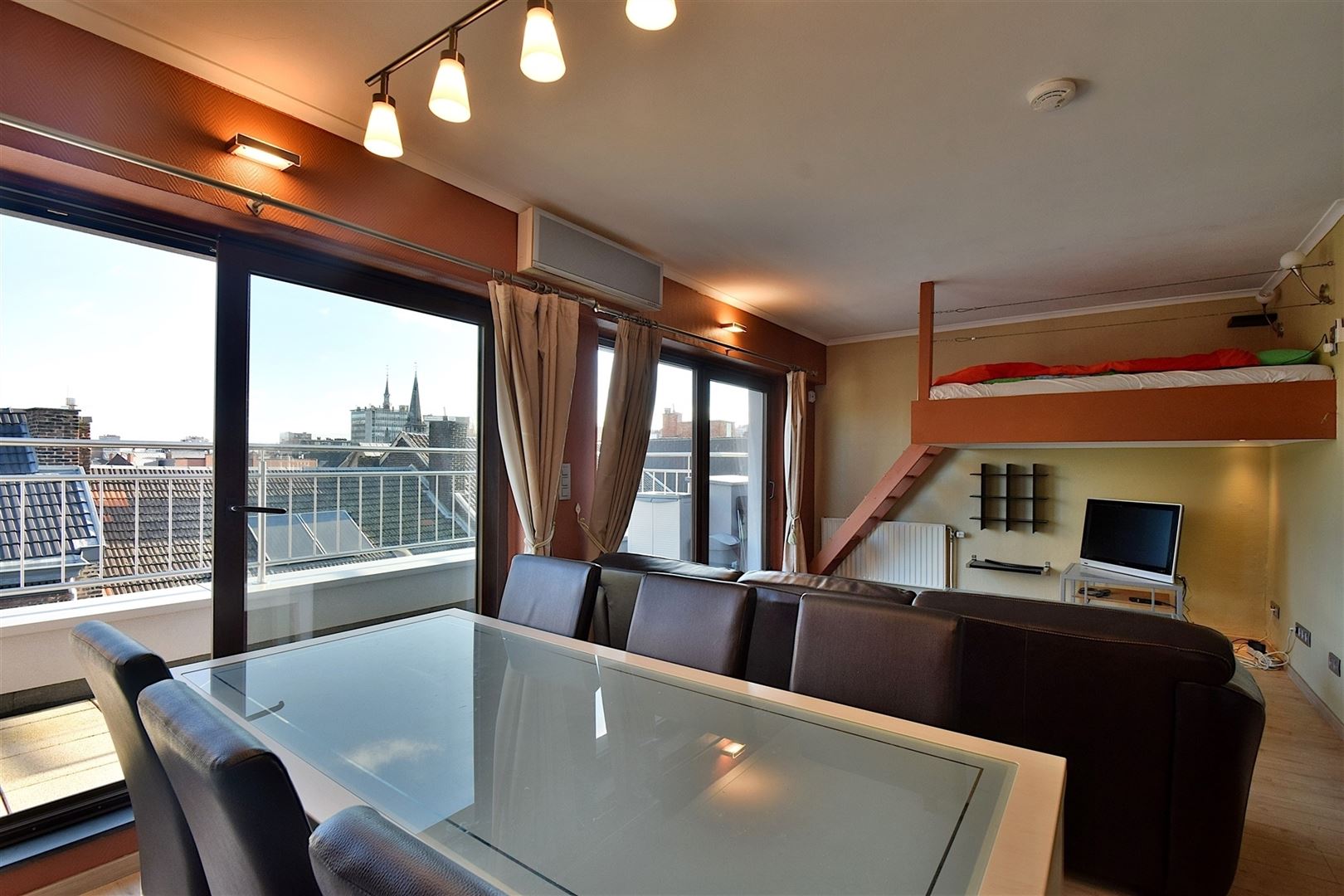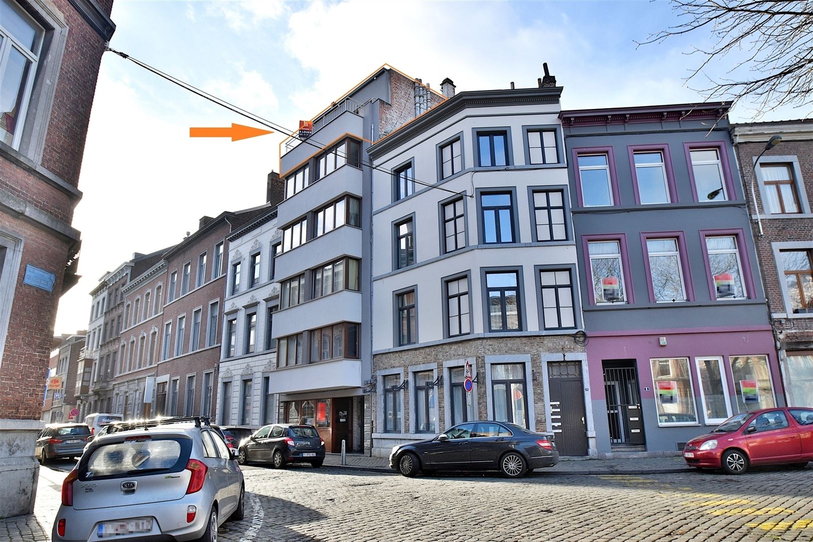 Bel appartement/studio meublé situé au 5ème et dernier étage d'une agréable résidence qui se compose comme suit: spacieux séjour avec salon, salle à manger et chambre en mezzanine, agréable cuisine équipée, salle de douche entièrement rénovée avec douche à l'italienne, cave privative et belle terrasse avec vue panoramique. Caractéristiques techniques: châssis double vitrage PVC, chauffage central gaz, climatisation, façade et toiture isolées, visiophone et porte d'entrée sécurisée. Idéalement situé dans un quartier calme de la cité ardente, proche de toutes commodités (commerces, supermarché, cinémas, piscine Jonfosse, centre ville, transports en commun, etc..). Cet appartement/studio est idéal pour un jeune couple ou personne seule. Loyer de 675€/mois hors charges avec 95€/mois de charges forfaitaires (électricité et entretien des communs, ascenseur, entretien chaudière, frais de syndic, assurance et eau). Possibilité de louer un emplacement de parking couvert. Libre immédiatement. A visiter sans tarder! www.immo-bertrand.be