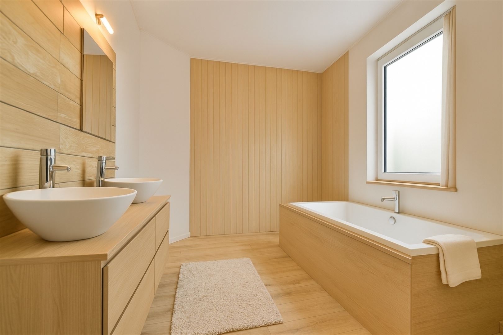 Au rez-de-chaussée : un premier salon, une spacieuse salle à manger, une cuisine entièrement équipée, une salle de bain (vasque, douche, baignoire et WC).