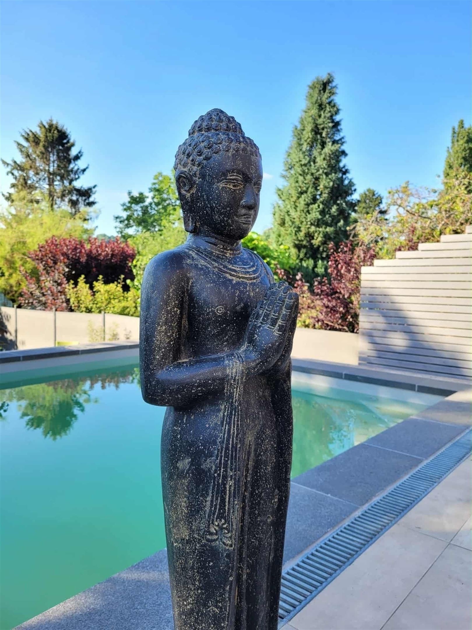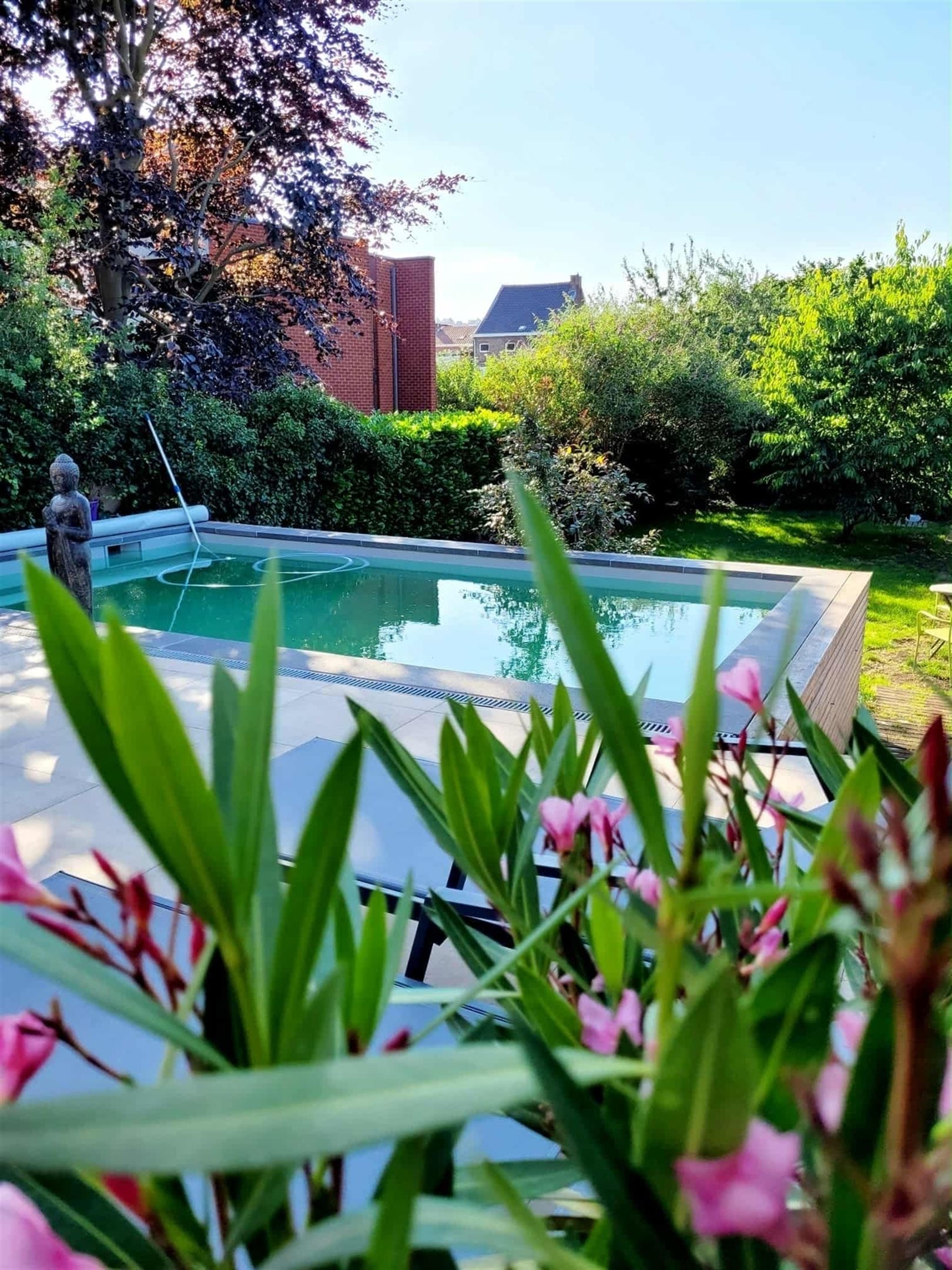 À l’extérieur, la maison propose une magnifique terrasse d’environ 30 m² accompagnée d'une piscine chauffée, le tout surplombant un beau jardin plat, idéal pour les moments de détente en famille ou entre amis.