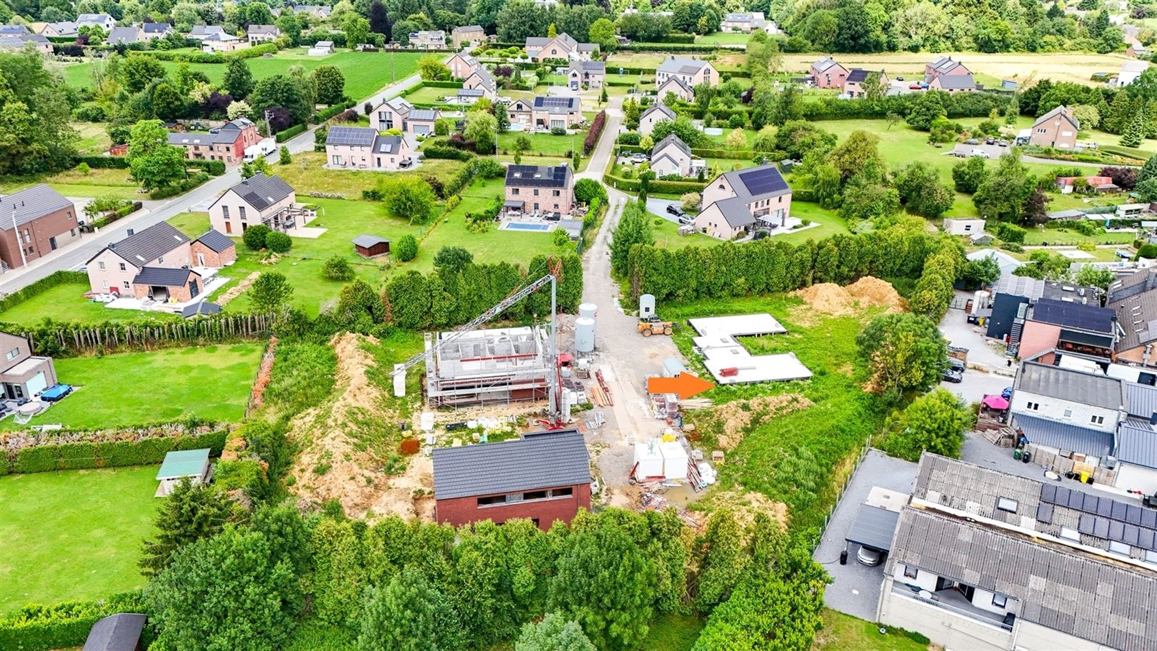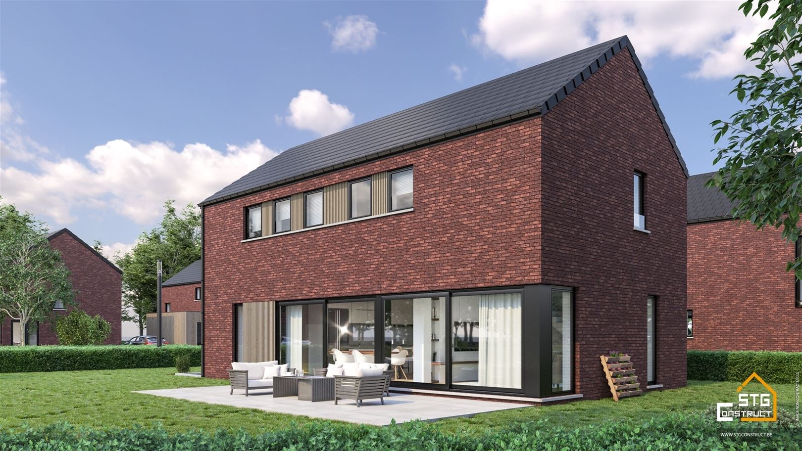 Située dans un clos, en recul de la route, composé de 5 habitations proches de toutes les commodités, nouvelle construction 3 façades (attenante par le garage) composée de : hall d'entrée, WC séparé, spacieux et lumineux séjour, cuisine ouverte sur la salle à manger, buanderie, garage une voiture, hall de nuit, une suite parentale avec dressing et salle de bain, 2 chambres, une salle de douche, un WC séparé et un grenier de rangement avec escalier escamotable. Pompe à chaleur avec chauffage sol, panneaux photovoltaïques, VMC double flux, citerne d'eau d pluie de 10.000 L, maçonnerie sans joint, châssis en PVC et ALU, PEB A. Prix affiché pour la maison hors frais de raccordement (6500,00 euros HTVA), hors frais de Notaire, hors peinture et sol dans les chambres et hors TVA (21%). Cahier des charges et liste de prix détaillée sur demande.