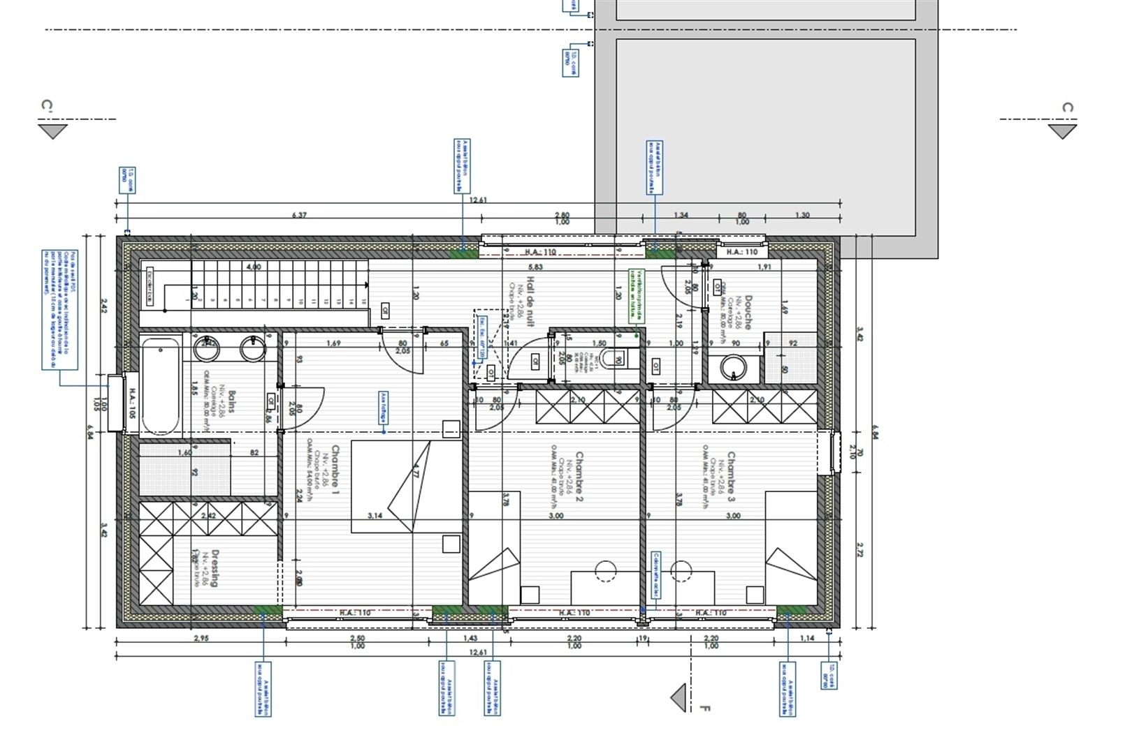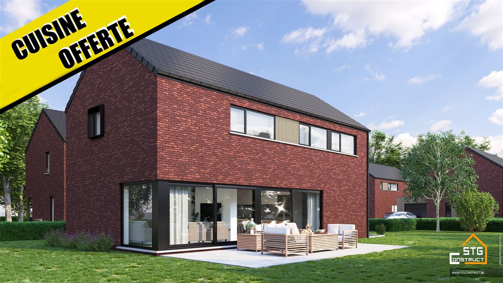 Située dans un clos, en recul de la route, composé de 5 habitations proches de toutes les commodités, nouvelle construction 3 façades (attenante par le garage) composée de : hall d'entrée, WC séparé, spacieux et lumineux séjour, cuisine ouverte sur la salle à manger, buanderie, garage une voiture, hall de nuit, une suite parentale avec dressing et salle de bain, 2 chambres, une salle de douche, un WC séparé et un grenier de rangement avec escalier escamotable. Pompe à chaleur avec chauffage sol, panneaux photovoltaïques, VMC double flux, citerne d'eau d pluie de 10.000 L, maçonnerie sans joint, châssis en PVC et ALU, PEB A. Prix affiché pour la maison hors frais de raccordement (6500,00 euros HTVA), hors frais de Notaire, hors peinture et sol dans les chambres et hors TVA (21%). Cahier des charges et liste de prix détaillée sur demande. Une visite s’impose ! Informations données à titre indicatif et non contractuel. ww.immo-bertrand.be