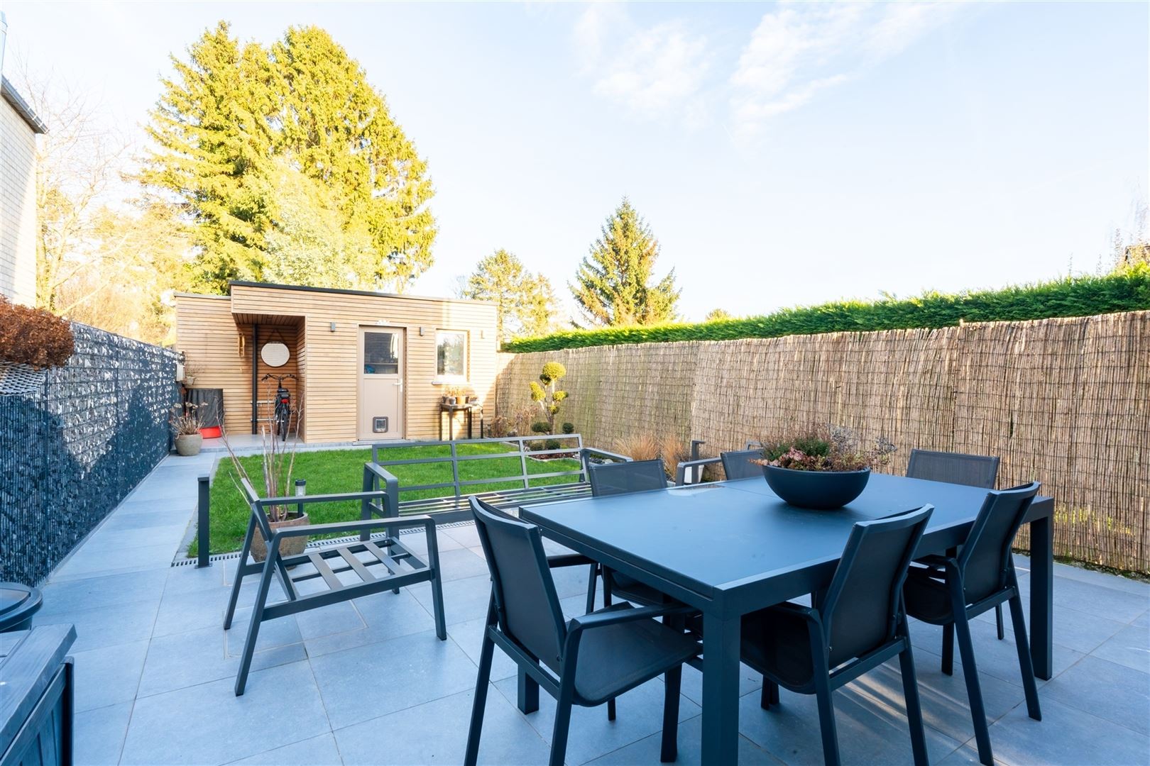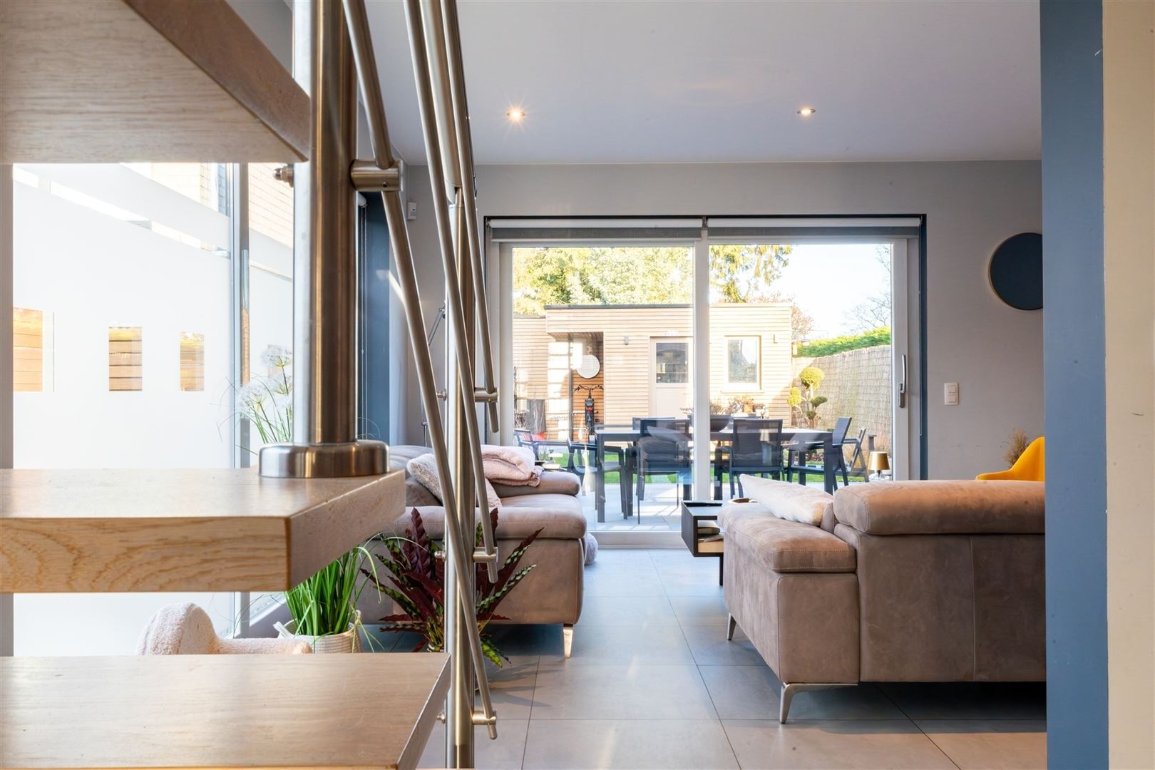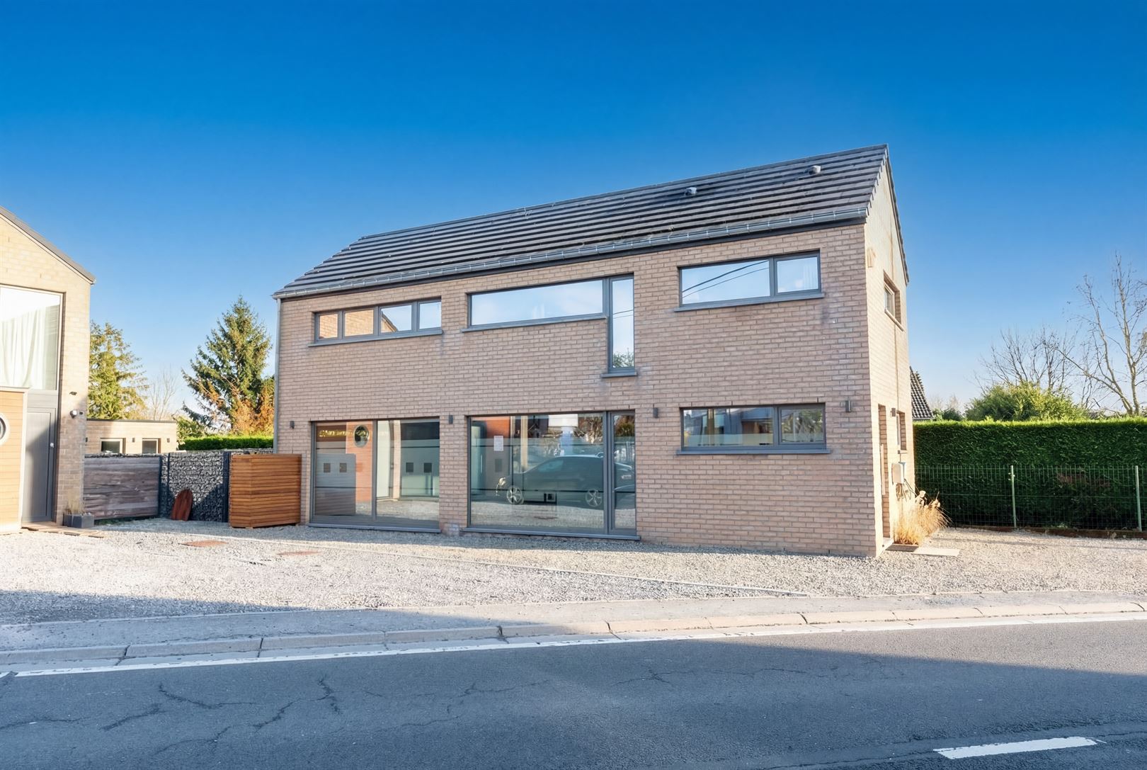 Caractéristiques techniques : PEB A+, châssis PVC double vitrage, chauffage par le sol et eau chaude via pompe à chaleur, 14 panneaux photovoltaïques, micro-station d’épuration, système d’alarme, borne de recharge pour véhicule et citerne d’eau de pluie.
