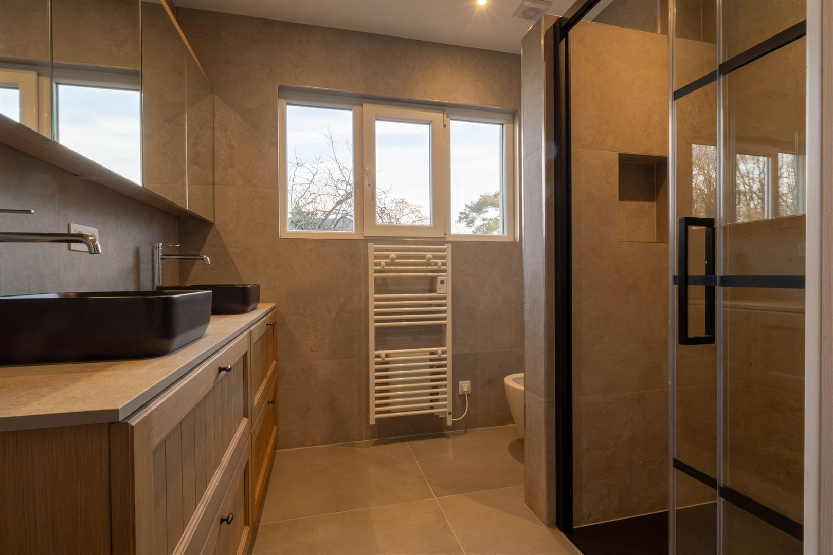 Caractéristiques techniques : châssis PVC et aluminium double vitrage, chauffage central au gaz de ville, PEB « D ».
