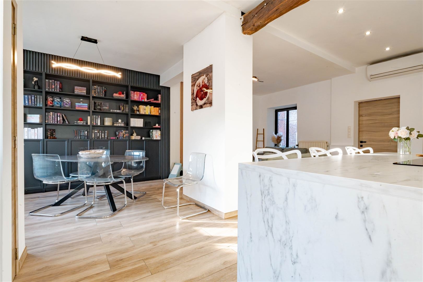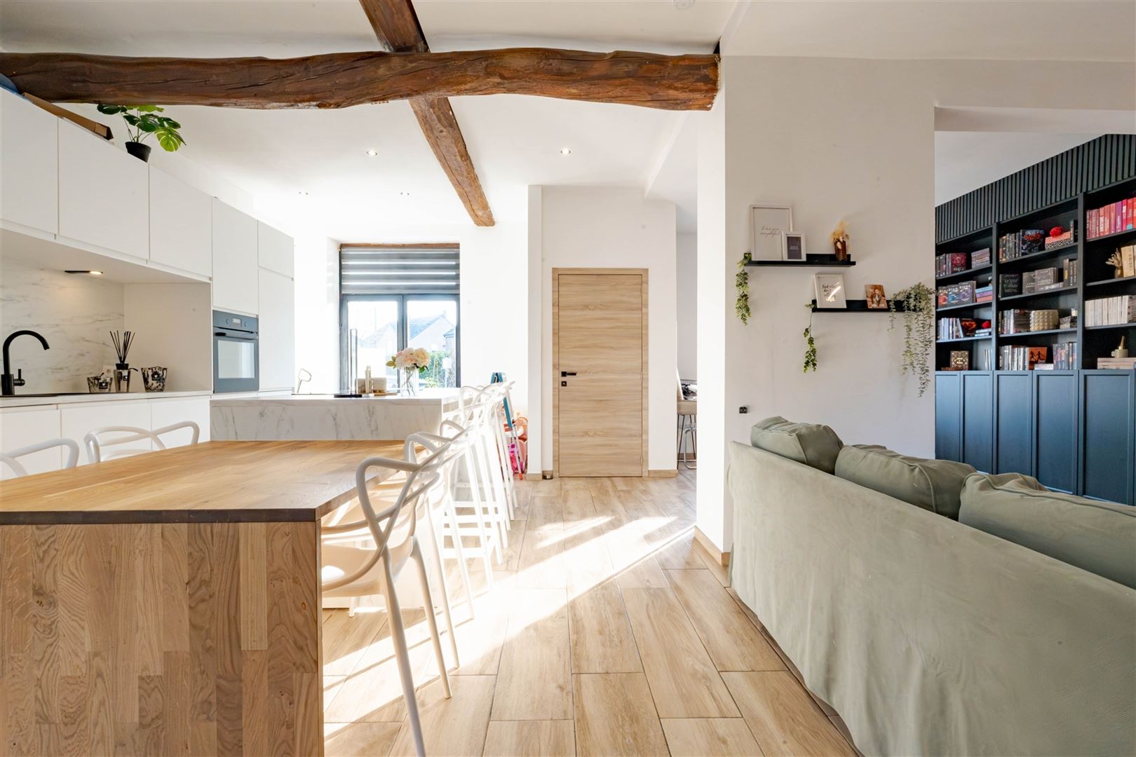 Charmante et spacieuse maison de caractère entièrement rénovée, qui se compose comme suit: Au rez-de-chaussée; hall d'entrée, spacieux et lumineux séjour de 58m² ouvert sur une cuisine neuve entièrement équipée, hall donnant accès au jardin, buanderie et WC indépendant. Au 1er étage; hall de nuit avec dressing, très belle salle de bains avec douche à l'italienne et baignoire, 3 belles chambres de 11m², 11m² et 15m² dont une avec dressing et WC indépendant. Ce bien bénéficie également de deux grandes caves sur une superficie totale de ± 42m², d'un grand grenier aménageable de ± 57m², d'une terrasse, d'un abri de jardin et d'un agréable jardin. Caractéristiques techniques: Châssis PVC et bois double vitrage, chauffage central mazout et station air chaud/air froid avec pompe à chaleur, électricité CONFORME, 14 panneaux photovoltaïques, matériaux pour l'isolation complète du toit (14 cm) mis à disposition. Cette jolie maison vous séduira par ses volumes intérieurs, sa rénovation complète avec goût et son potentiel d'agrandissement. Possibilité d'acquérir en option un garage et une plus grande partie de jardin. Faire offre à partir de 299.000 € (sous réserve de l'acceptation des propriétaires). A visiter sans tarder! Publicité donnée à titre informatif et non contractuel. www.immo-bertrand.be