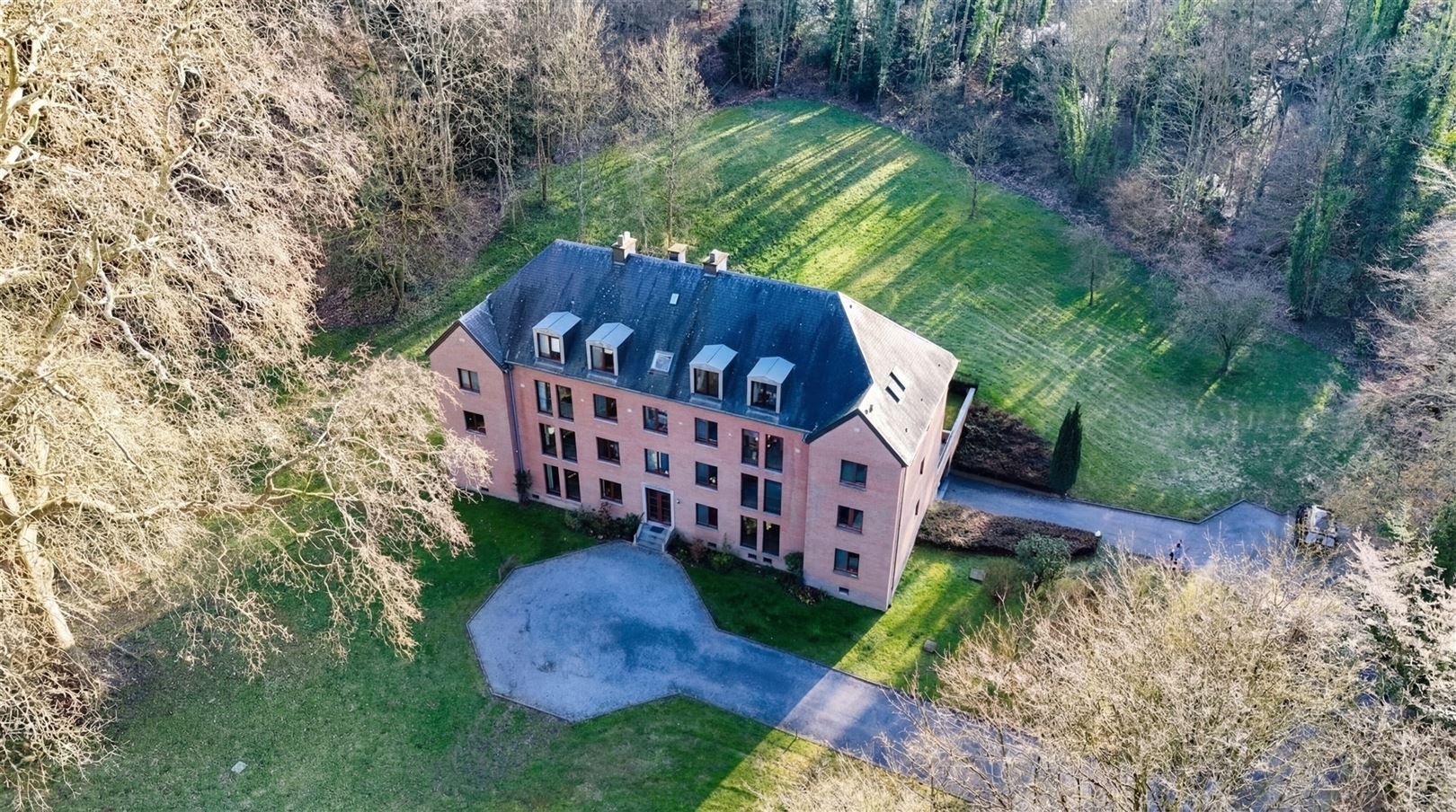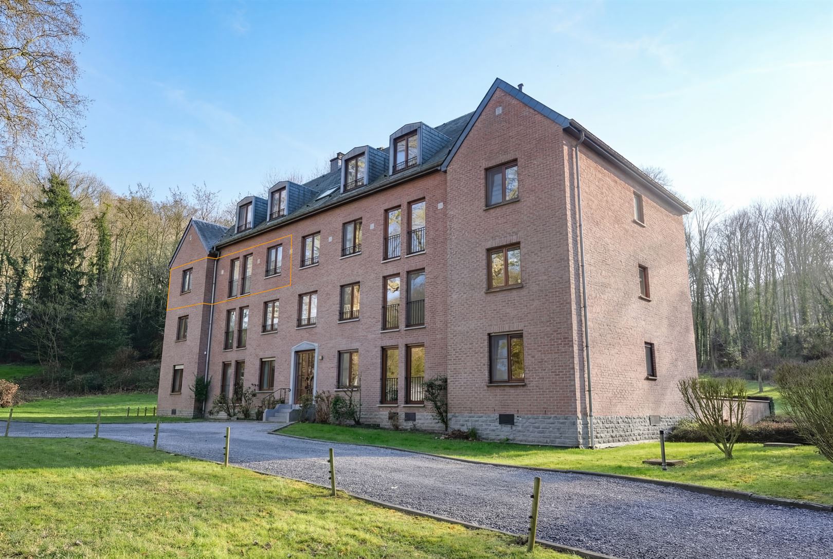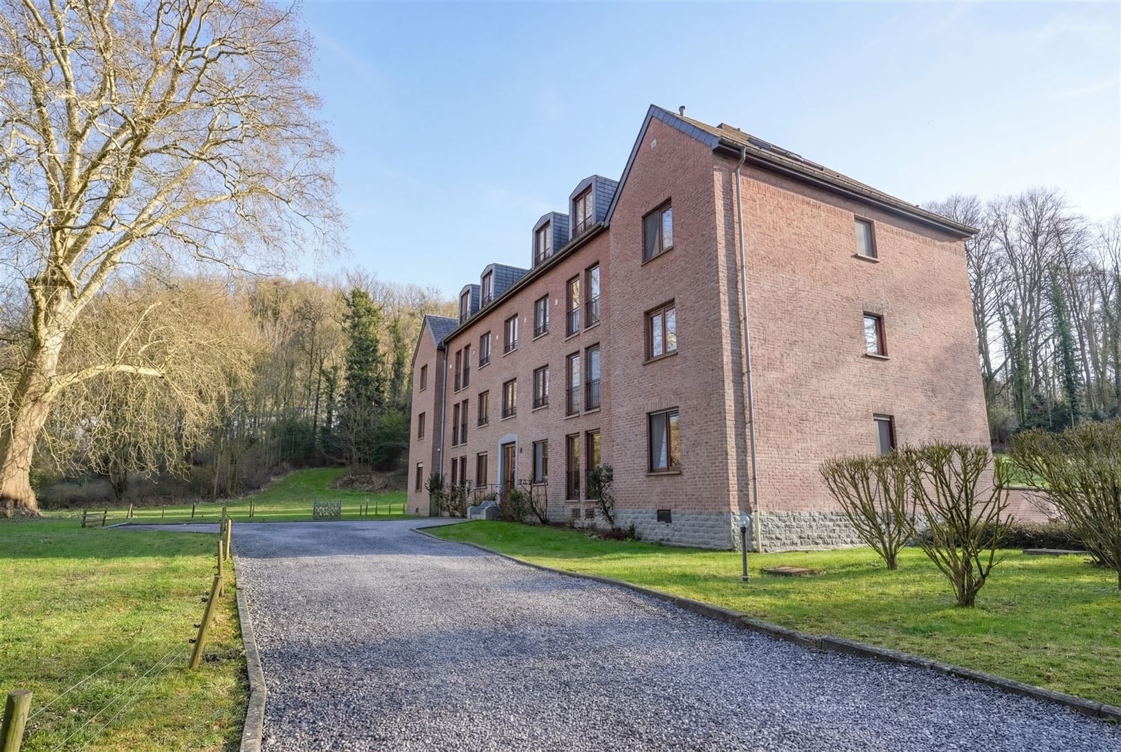 À l'extérieur : la copropriété bénéficie d'un parc privatif bordé de bois, offrant une tranquillité absolue.