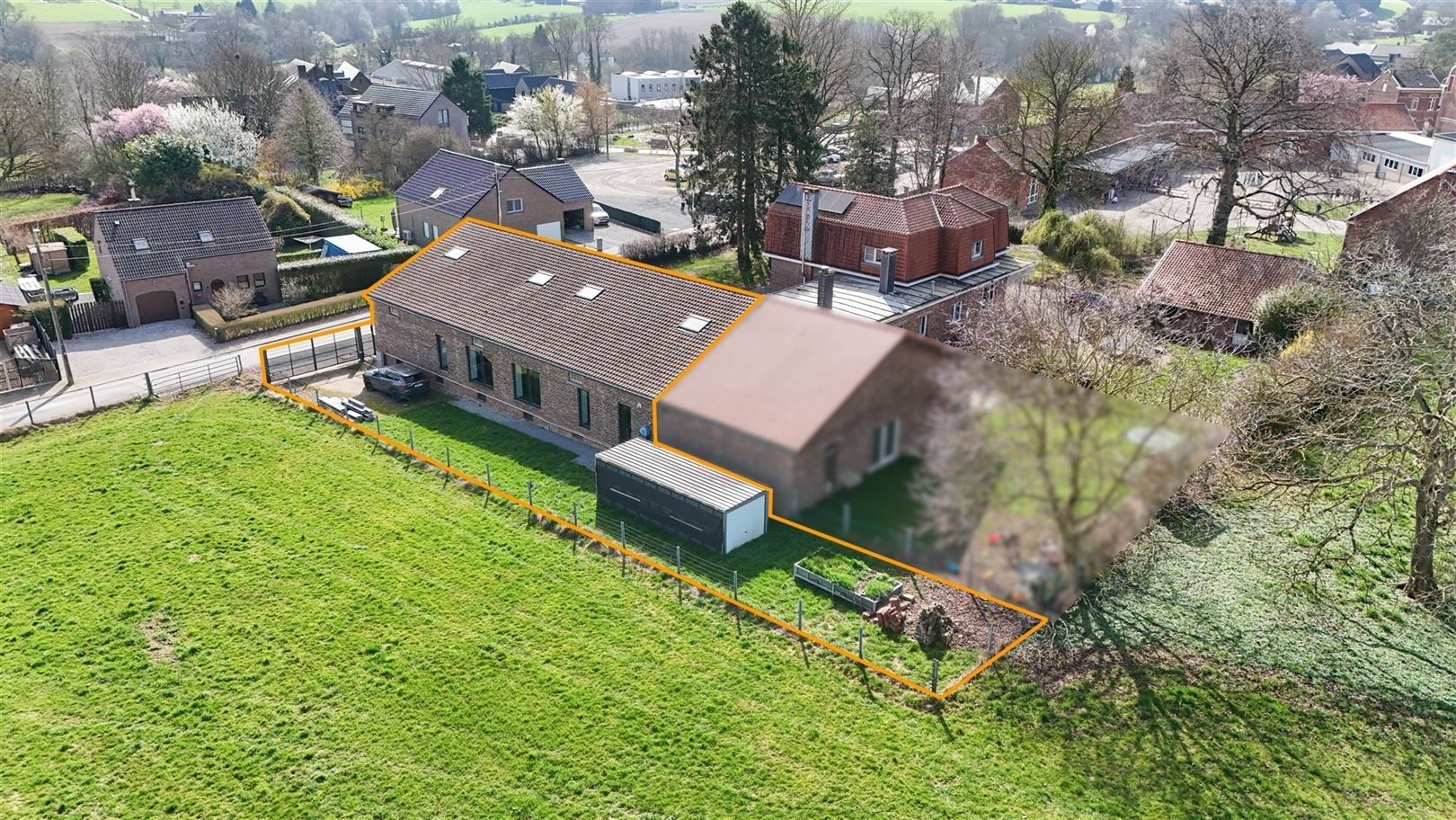 À l’extérieur : un jardin et un abri de jardin, sécurisés par un portail électrique.