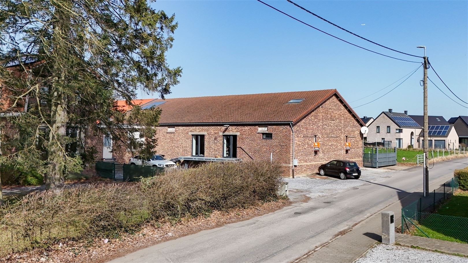 Caractéristiques techniques : PEB A, châssis PVC double vitrage, chauffage au sol au gaz de ville, toiture en tuiles, 2 panneaux solaires, raccordement à l’égout.