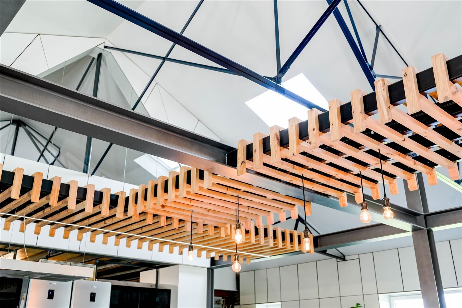 Une lumineuse et spacieuse pièce de vie ouverte de 275m² comprenant une cuisine équipée, une vaste salle à manger, un salon, un coin bureau, ainsi qu’une buanderie et un espace de rangement.