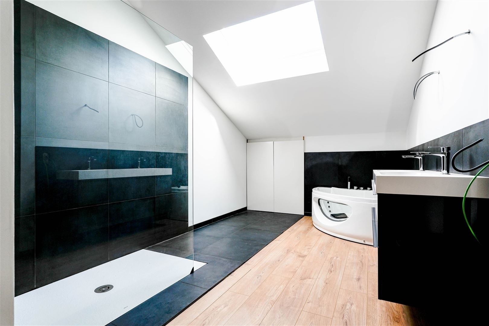 Au 1er étage : une splendide suite parentale avec dressing et salle de bain tout confort (douche à l’italienne, bain à remous et toilette privative). Un second espace de +/-80m² offre la possibilité d’un aménagement selon vos besoins (chambres supplémentaires, bureau…).