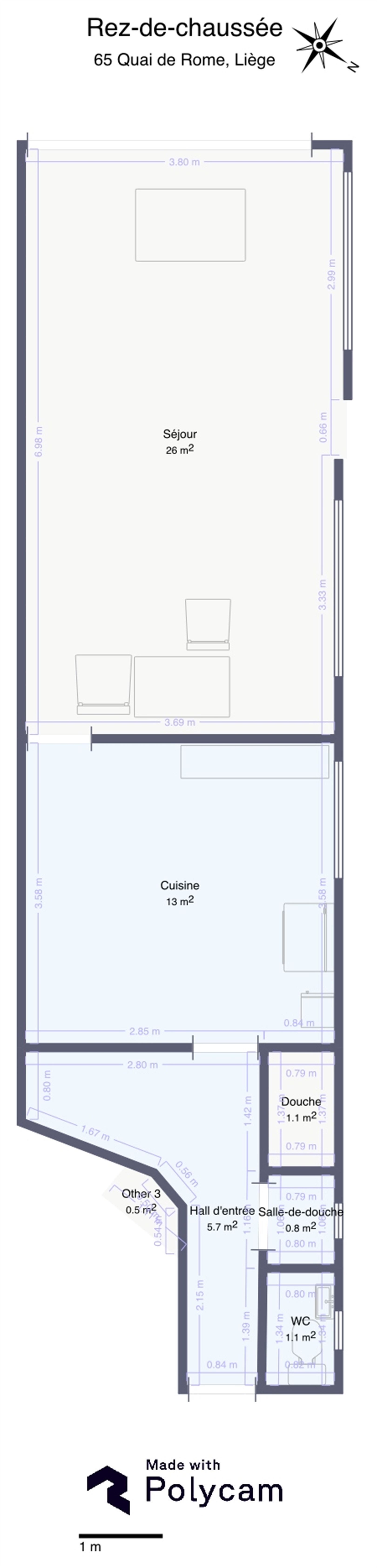 Dès l’entrée, vous découvrez un hall menant vers une cuisine spacieuse de 13 m², idéale pour aménager un véritable espace de vie convivial. Le lumineux séjour de 26 m² constitue le cœur du bien et offre de nombreuses possibilités d’aménagement selon vos besoins : espace professionnel, pied-à-terre ou investissement. Une salle de douche fonctionnelle ainsi qu’un WC indépendant complètent l’ensemble.