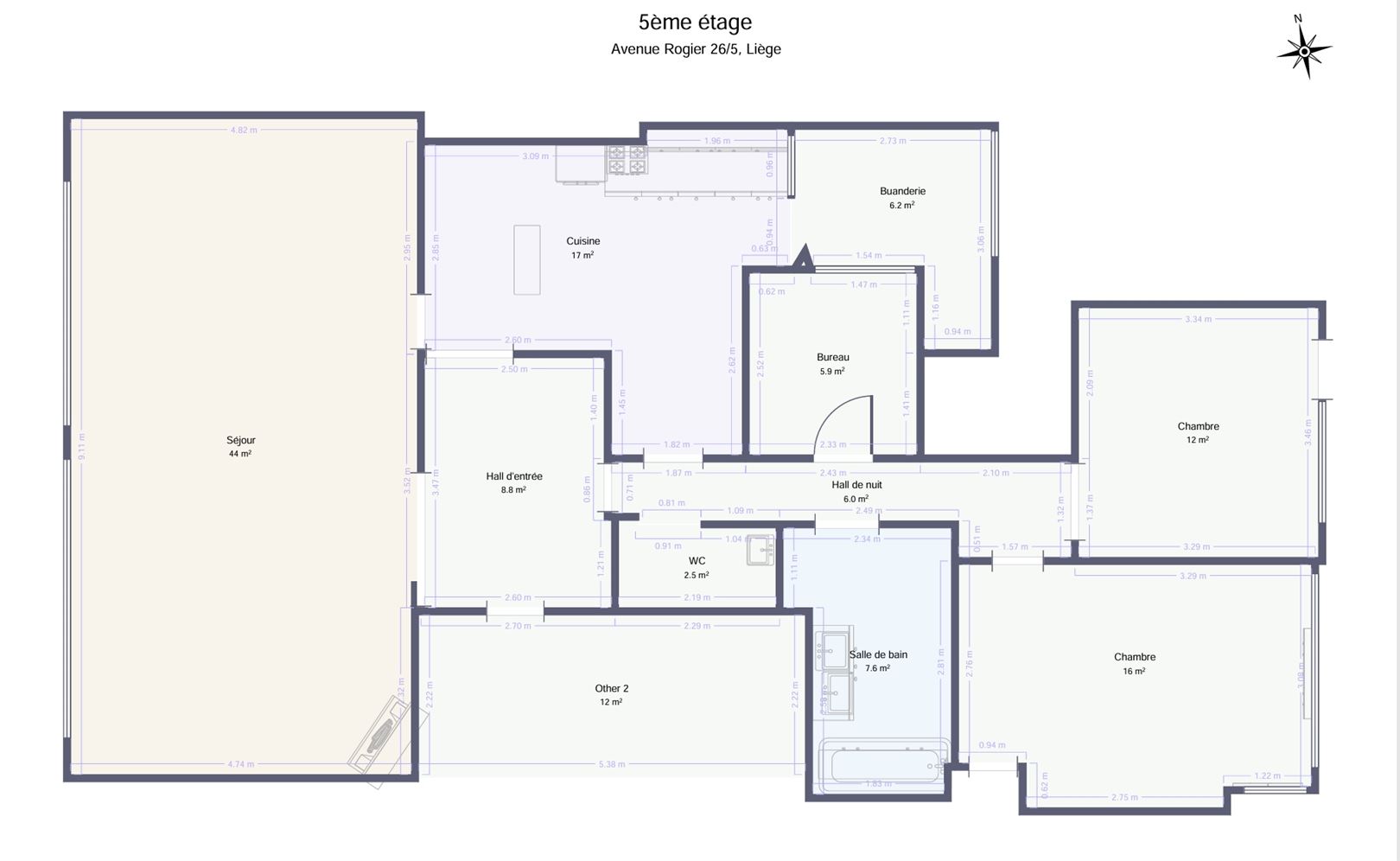 Idéalement situé au début de l’avenue Rogier, entre le centre-ville et la gare des Guillemins, ce superbe appartement de ±150 m² occupe seul le 5ᵉ étage d’une résidence de standing composée de 7 unités (un appartement par étage), garantissant calme, intimité et exclusivité.