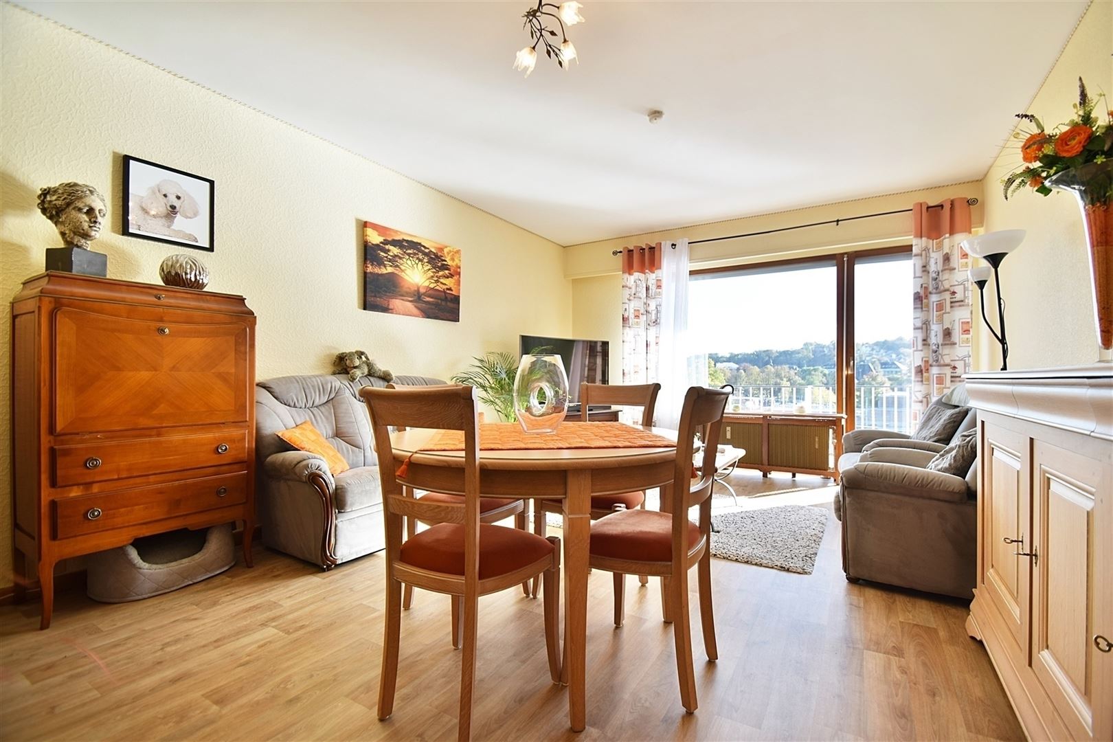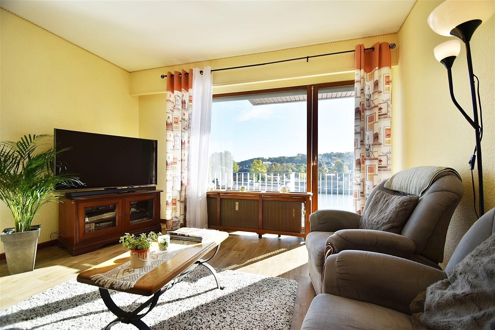 Idéalement situé en bord de Meuse et à deux pas du centre-ville, bel appartement au 4ème étage d'une résidence bien tenue et avec ascenseur , qui se compose comme suit: hall d'entrée, spacieux séjour de 22m² avec accès à la terrasse, cuisine équipée, hall de nuit, salle-de-douche, WC indépendant et 2 chambres de 14m² et 8m² avec accès à la seconde terrasse. Ce bien bénéficie également d'une cave privative au sous-sol et d'un emplacement de parking individuel. Caractéristiques techniques: châssis bois double vitrage, chauffage commun, ascenseur, stores solaires, parlophone, raccordement à l'égout. Cet appartement logé au sein d'une copropriété calme et paisible vous séduira par sa fonctionnalité, sa localisation et sa vue imprenable sur la vallée de la Meuse. Libre au 1er août 2026. Provisions de charges: 200€/mois (chauffage, eau chaude/froide et charges communes). Plus d'infos sur www.immo-bertrand.be