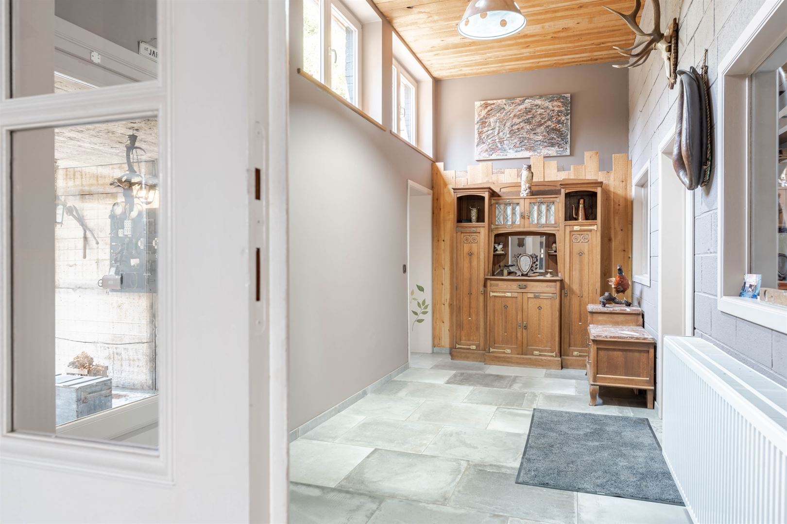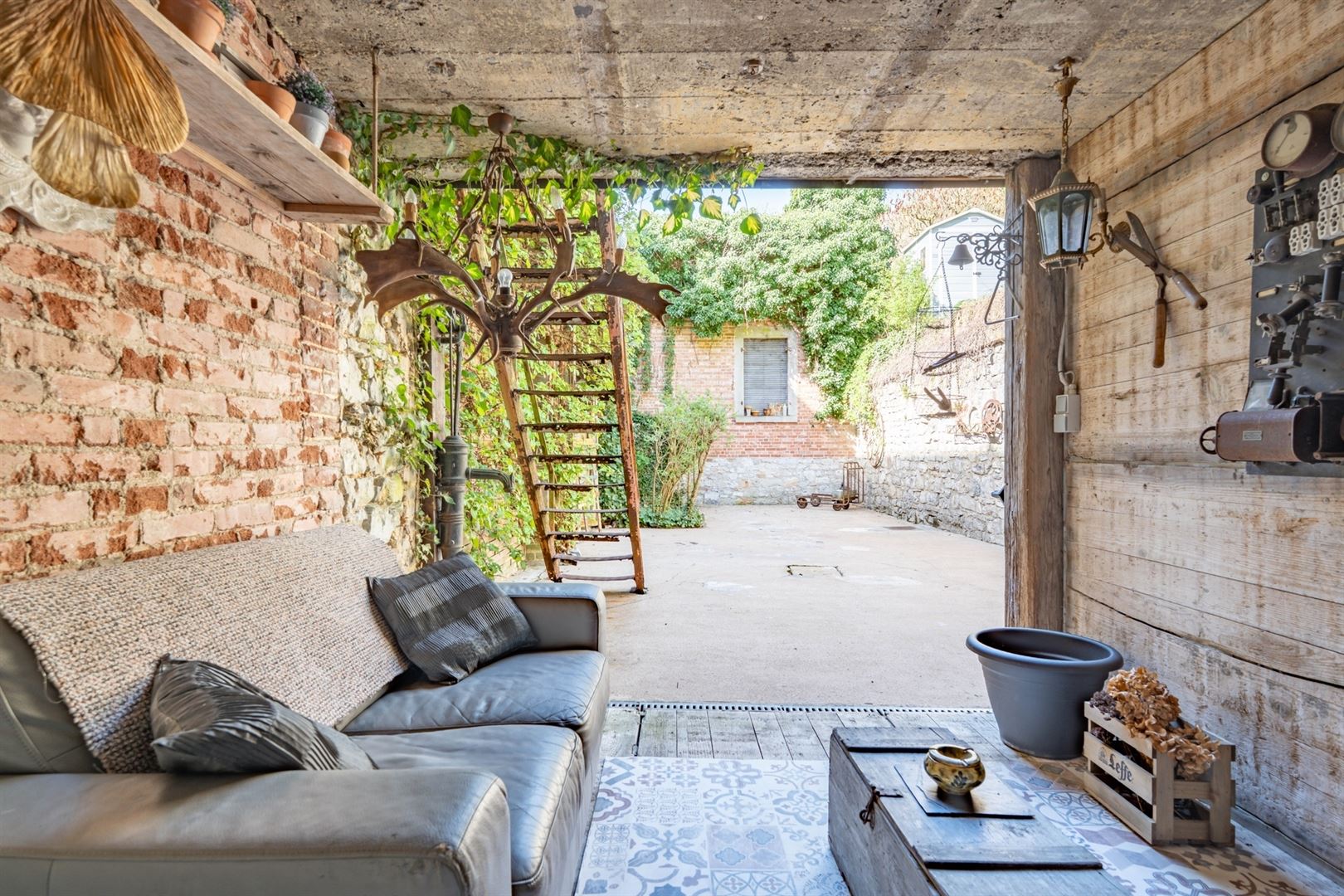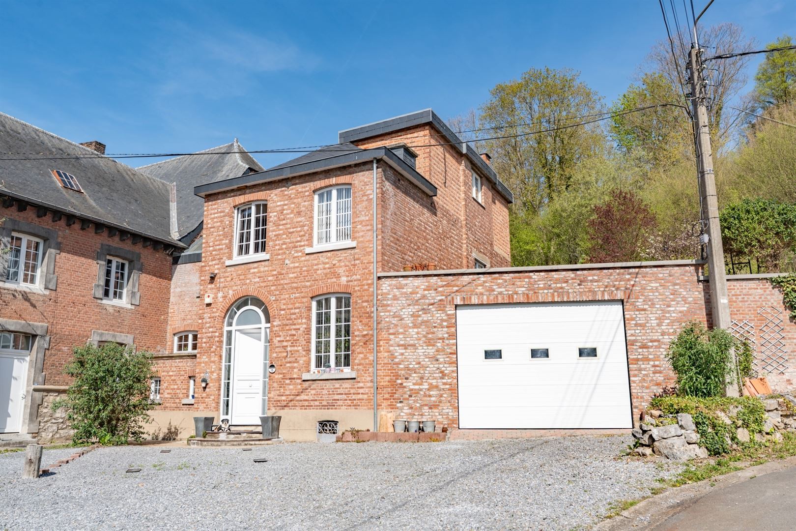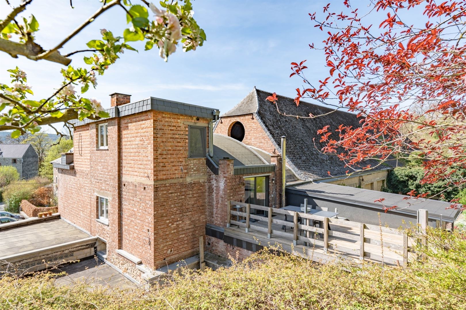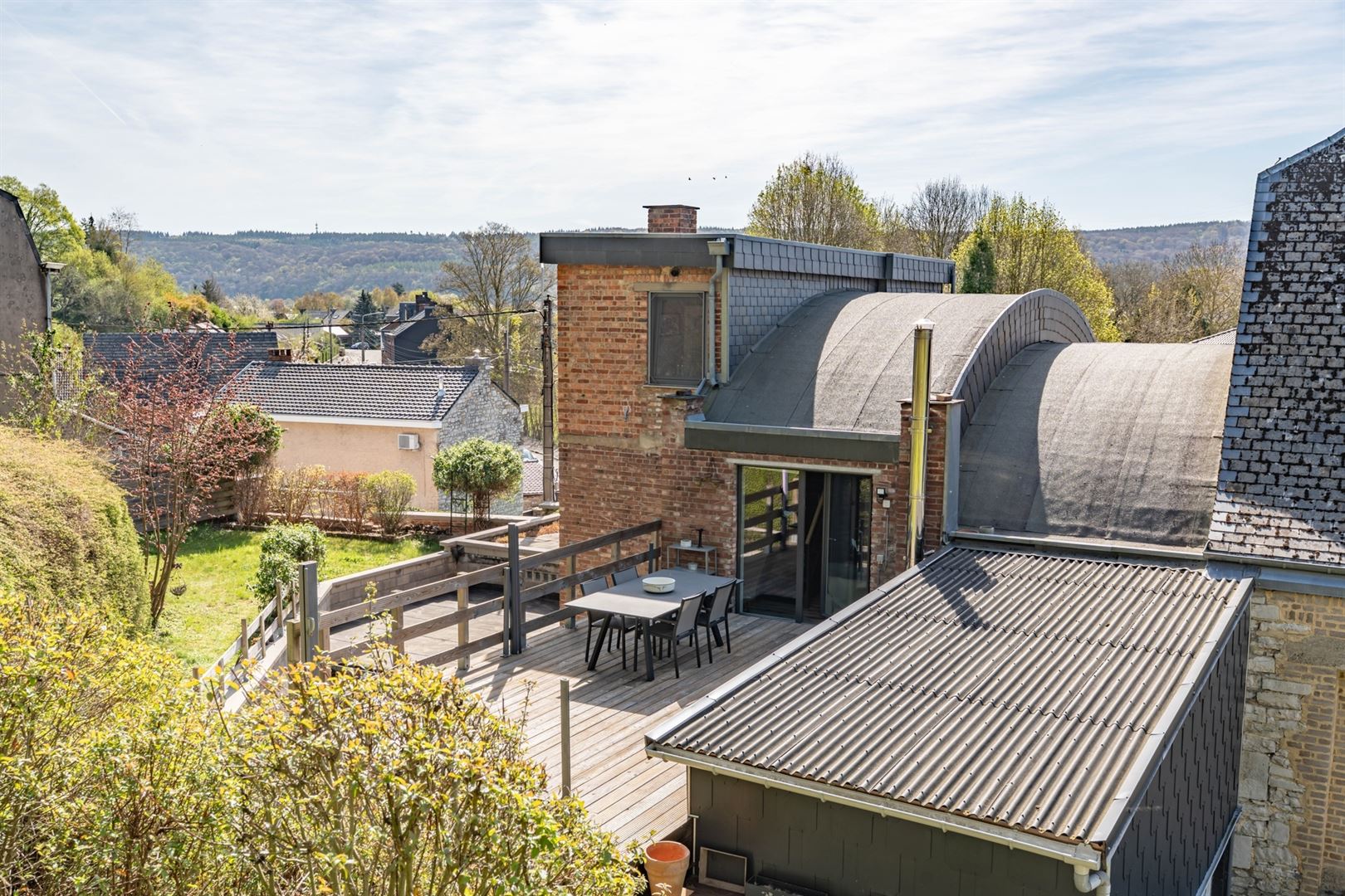 Au 2ème étage: une mezzanine offrant l'accès à une cuisine semi-équipée, une salle de douche et un grenier de rangement. A l'extérieur: deux agréables cours, une terrasse et un beau jardin arboré. Techniques: Châssis bois double vitrage, électricité conforme, chauffage central mazout, poêle à bois, toiture en ardoises naturelles et roofing, égoût. Vous serez séduit par les matériaux de qualités, par le charme atypique du bien et par ses nombreuses possibilités d'affectation (partie gîte, profession libérale,..). Coup de coeur assuré!
