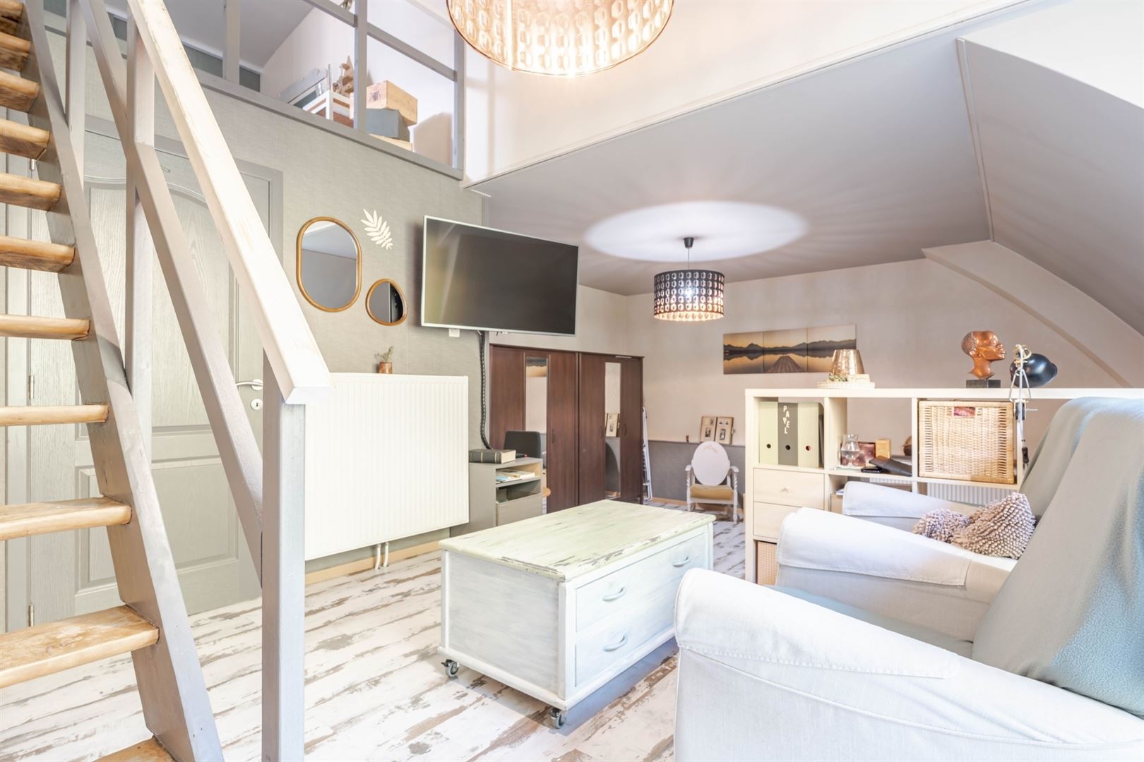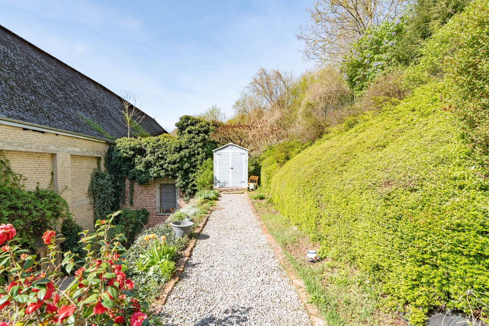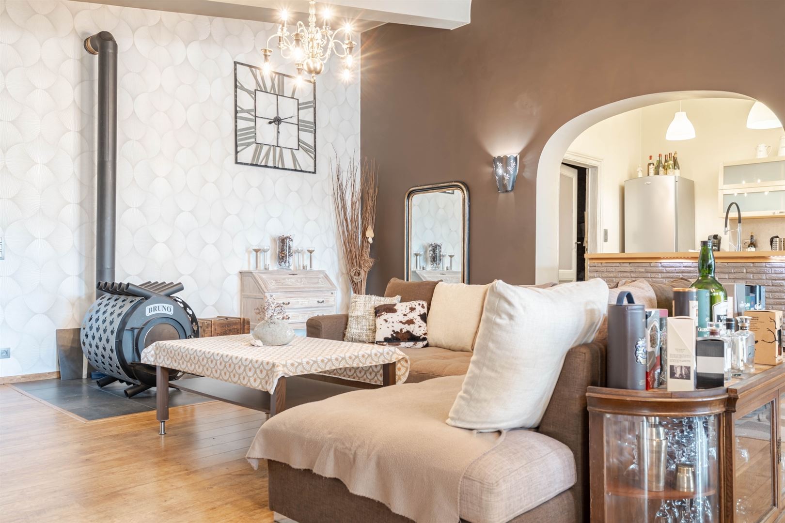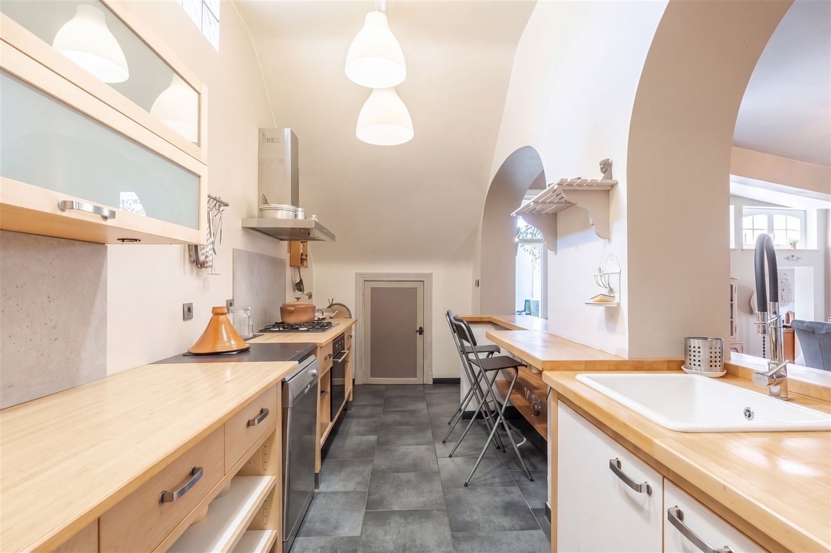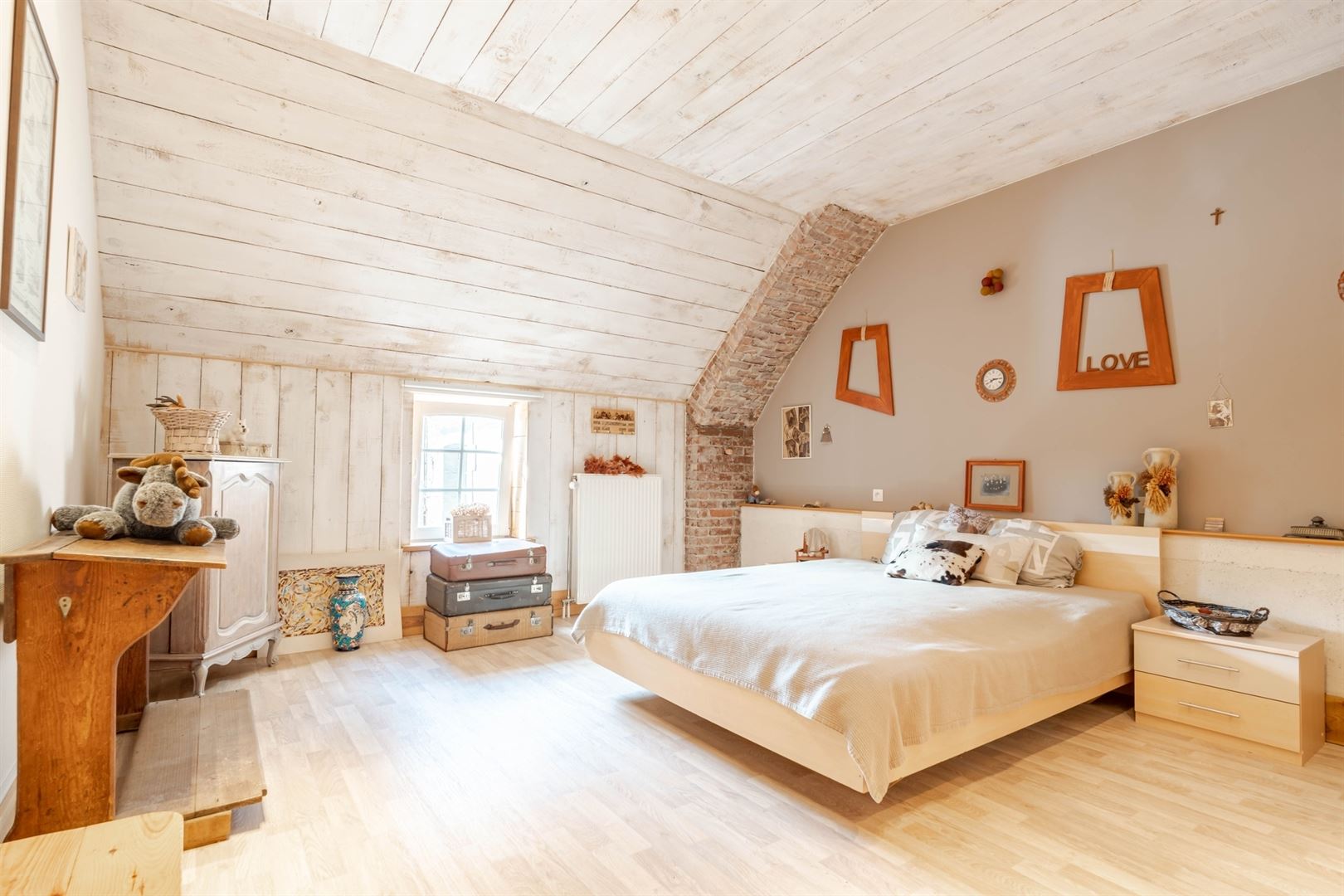 Au 2ème étage: une mezzanine offrant l'accès à une cuisine semi-équipée, une salle de douche et un grenier de rangement. A l'extérieur: deux agréables cours, une terrasse et un beau jardin arboré. Techniques: Châssis bois double vitrage, électricité conforme, chauffage central mazout, poêle à bois, toiture en ardoises naturelles et roofing, égoût. Vous serez séduit par les matériaux de qualités, par le charme atypique du bien et par ses nombreuses possibilités d'affectation (partie gîte, profession libérale,..). Coup de coeur assuré!