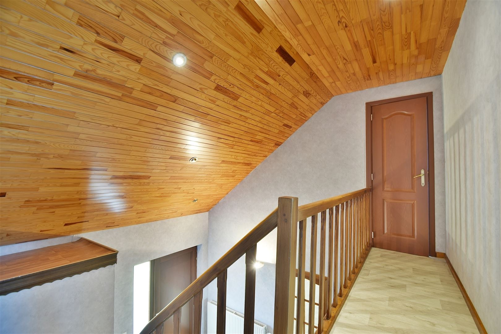 A l'étage: deux vastes chambres (+/- 20m² et 21m²) et un bureau.