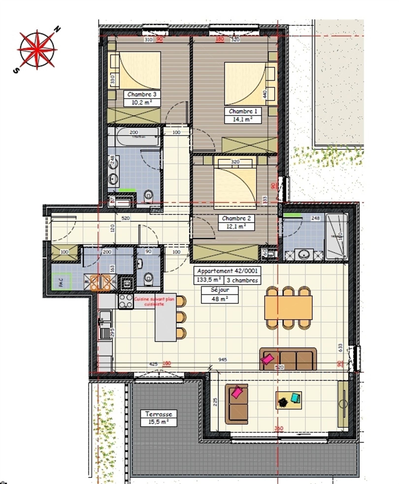 Au sein d’une petite copropriété à taille humaine « L'Orée du Rognac », ce spacieux rez-de-chaussée développe une superficie habitable de 133,5 m² (brut). Il se compose d’un hall d’accueil, d’une généreuse et lumineuse pièce de vie d’environ 48 m², orientée sud-est, intégrant une cuisine super-équipée ouverte sur la terrasse et le séjour. Un hall de nuit dessert trois belles chambres (14,1 m², 12,1 m² et 10,2 m²), dont une suite parentale avec salle de douche privative. L’appartement comprend également une salle de bain avec WC, une buanderie/local technique ainsi qu’un WC séparé.